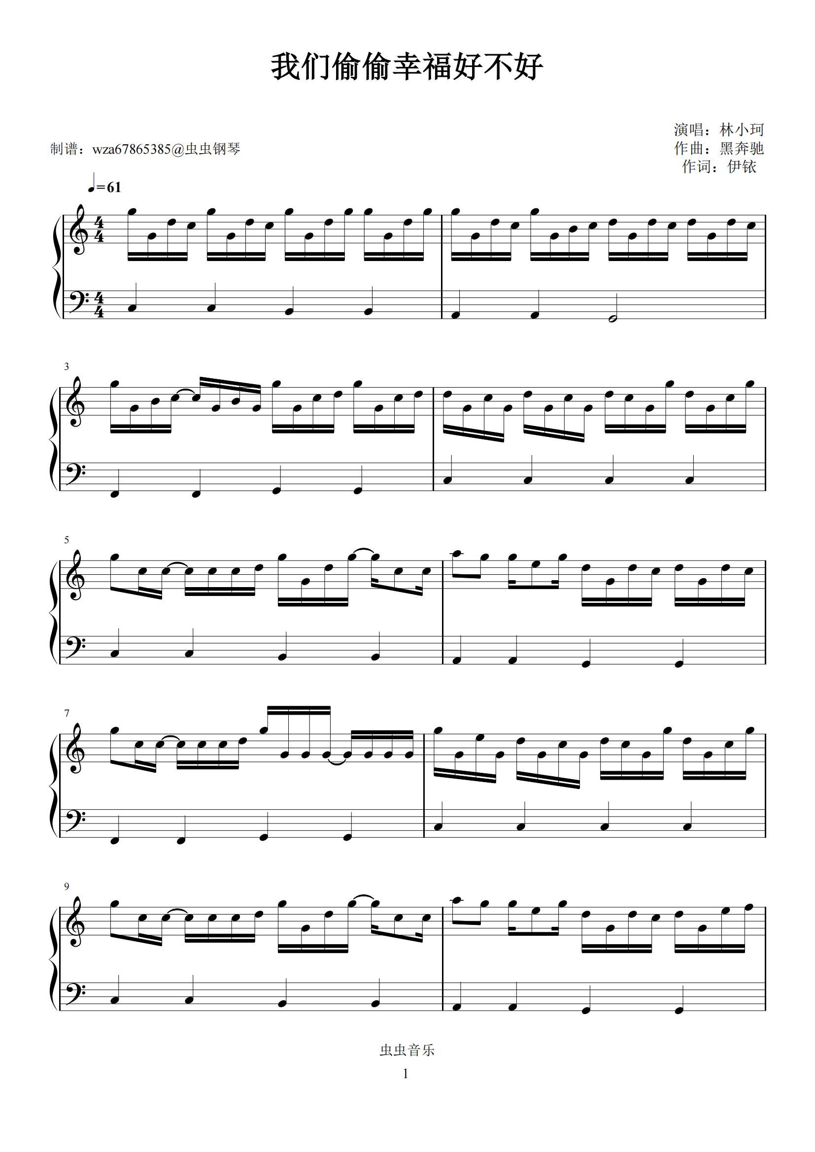 我们偷偷幸福好不好钢琴简谱 数字双手 伊铱