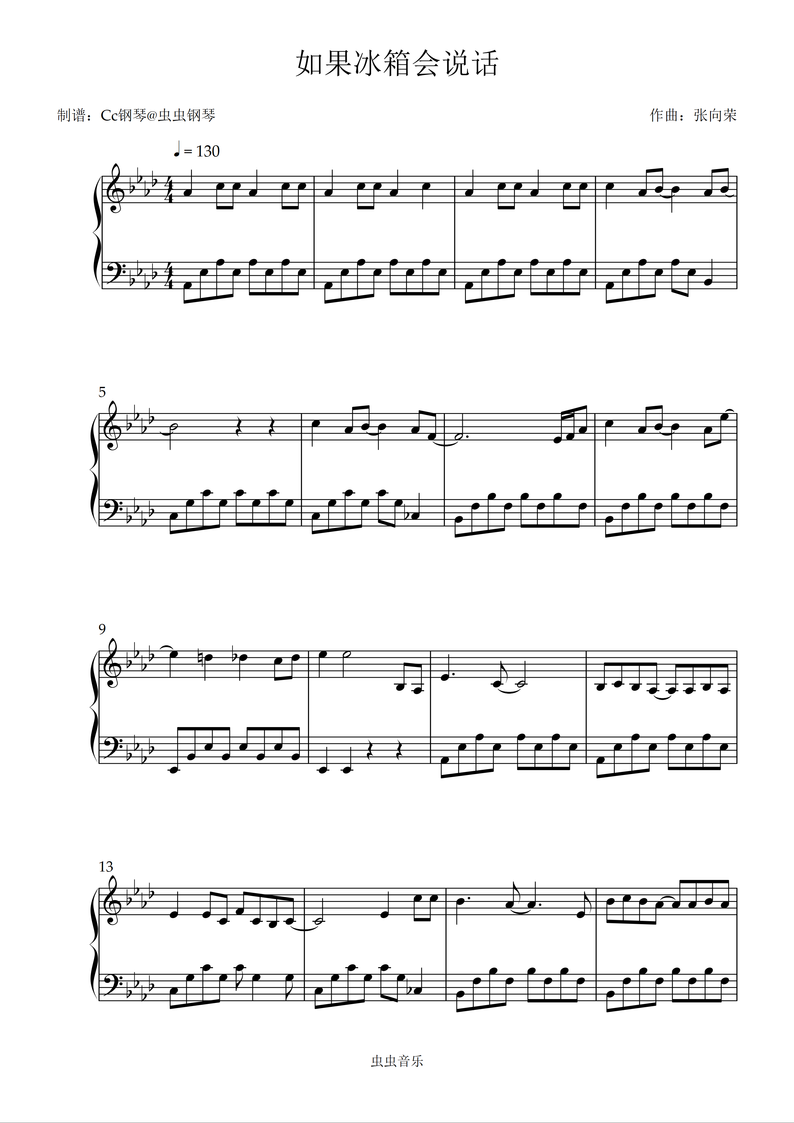 钢琴谱:如果冰箱会说话 原调 好听易上手