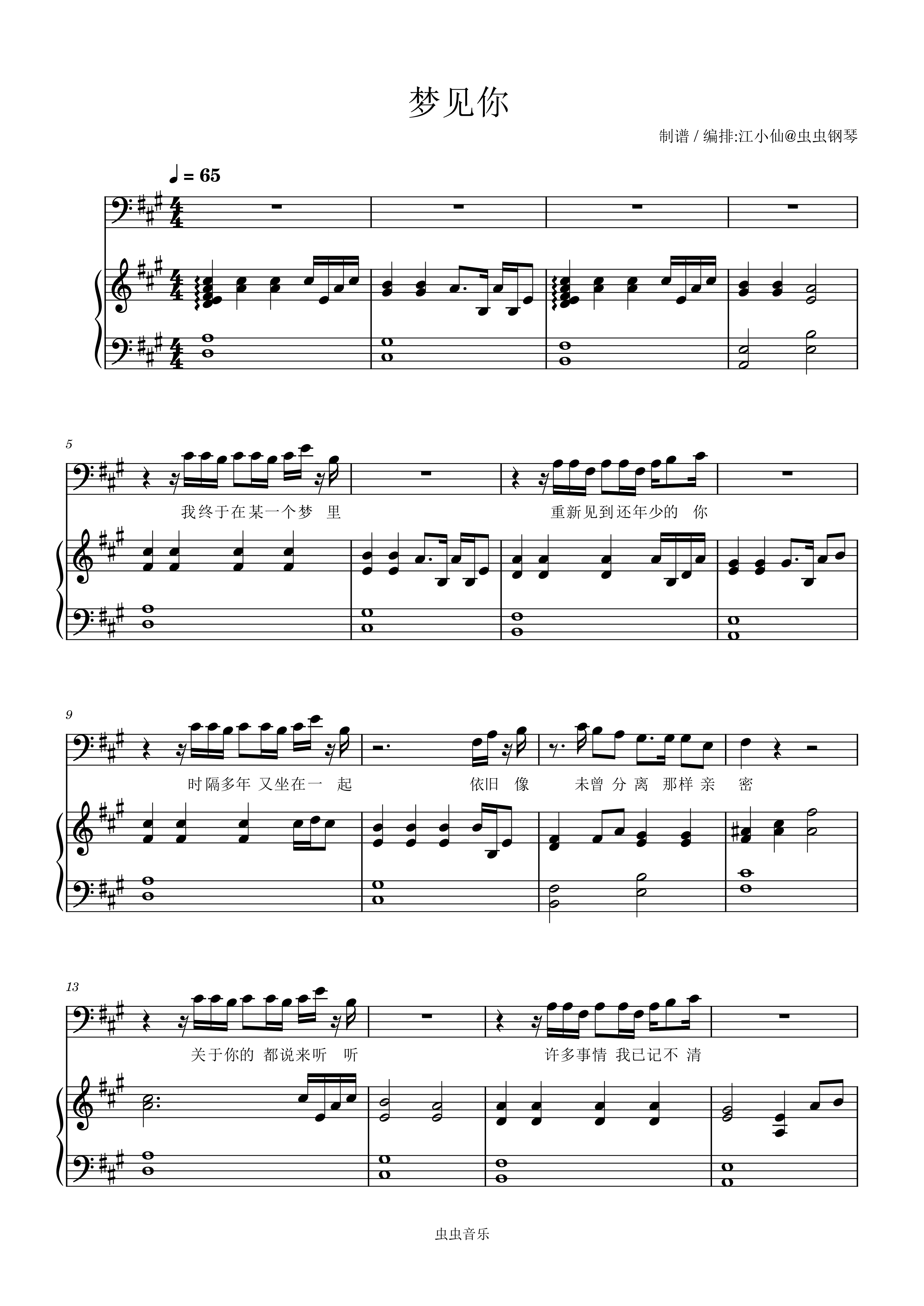 梦见你钢琴简谱 数字双手 沃特艾文儿