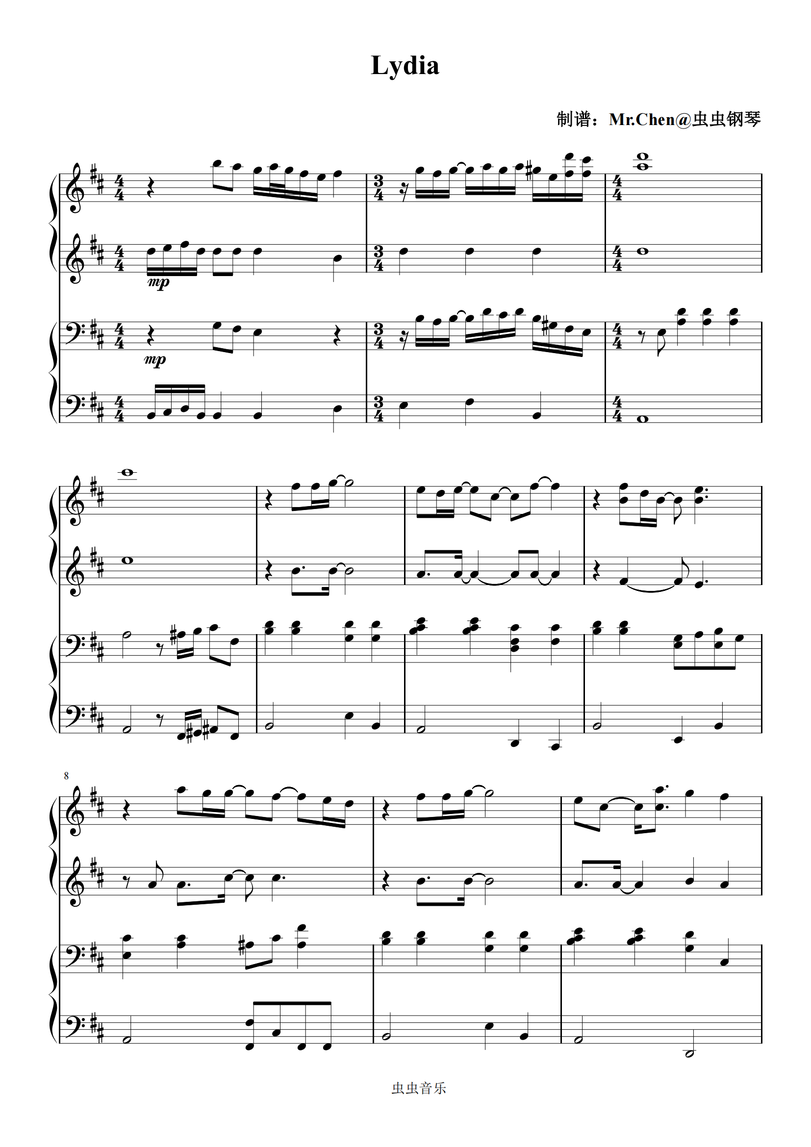 钢琴谱:Lydia (四手联弹)- 飞儿乐团