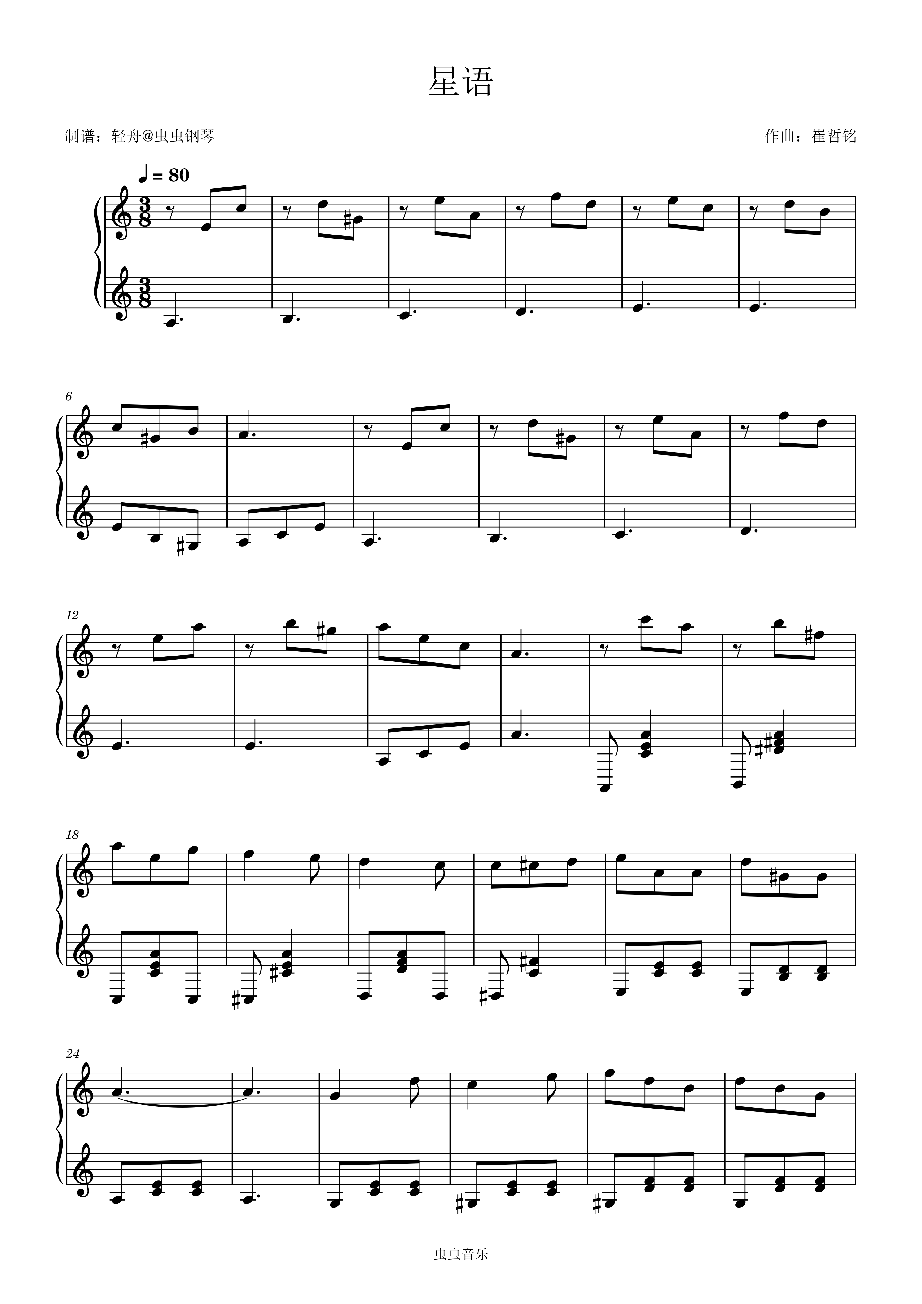 • 星语心愿钢琴简谱 e调 数字双手 高雪岚