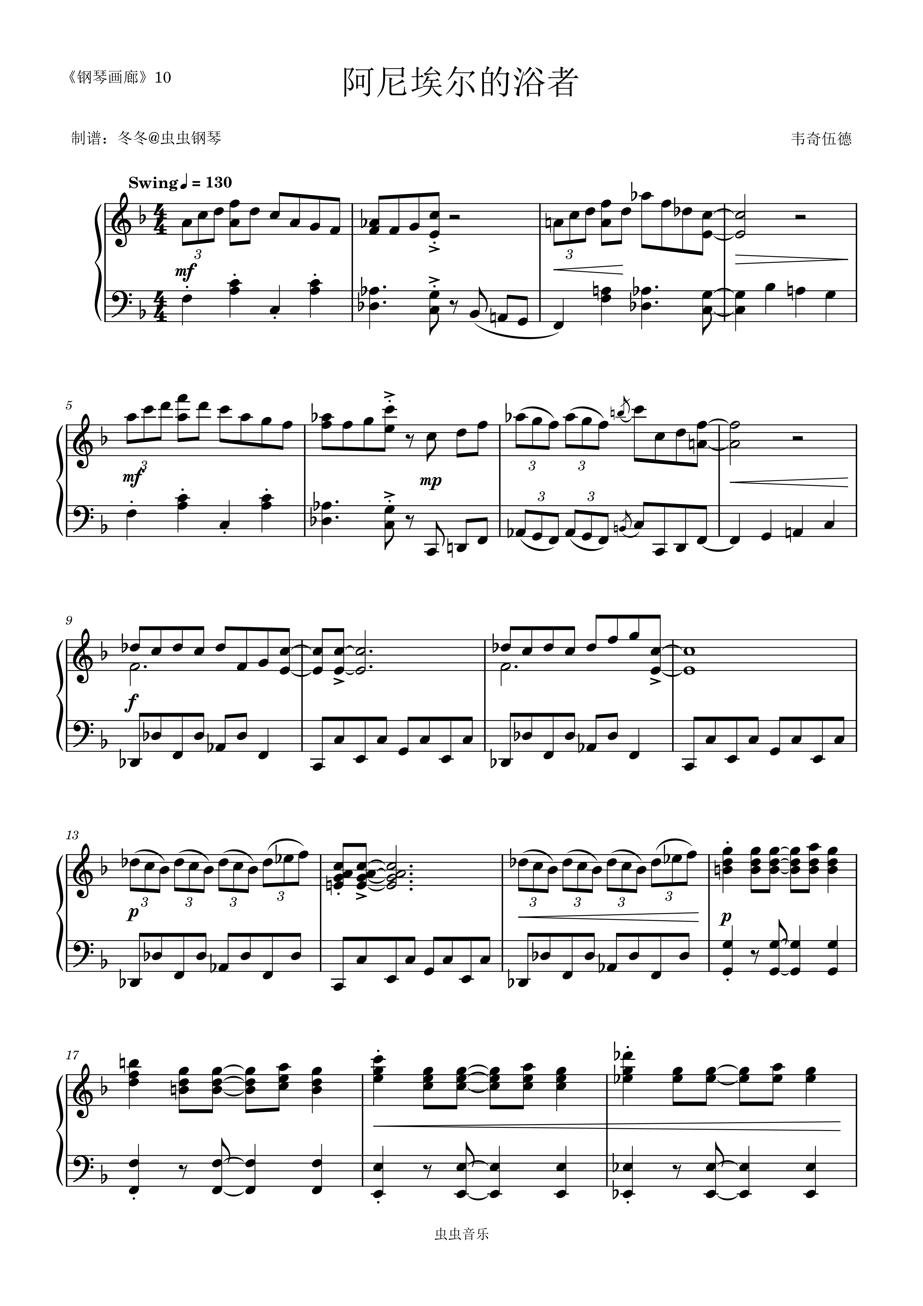 阿尼埃尔的浴者钢琴简谱 数字双手