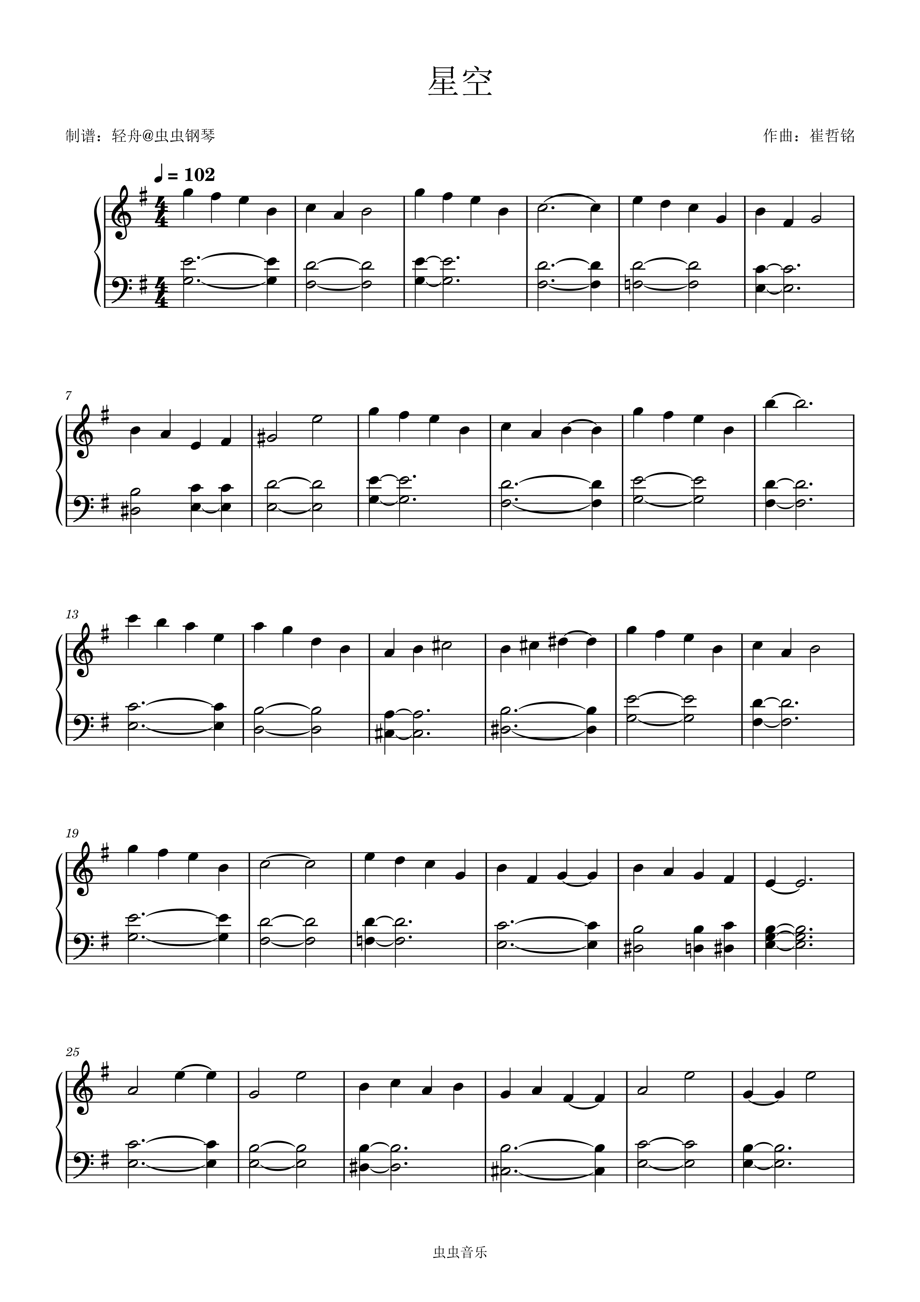 • Lyphard Melodie 星空钢琴简谱 g调 数字双手