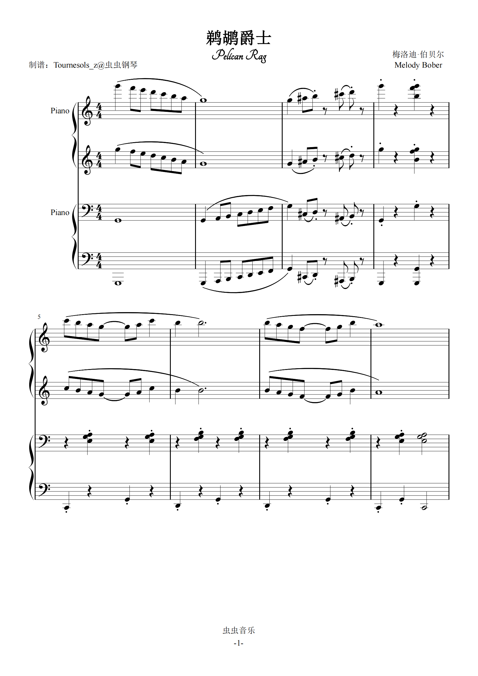 钢琴谱:鹈鹕爵士(四手联弹,适合音乐会表演的小型四手联弹)