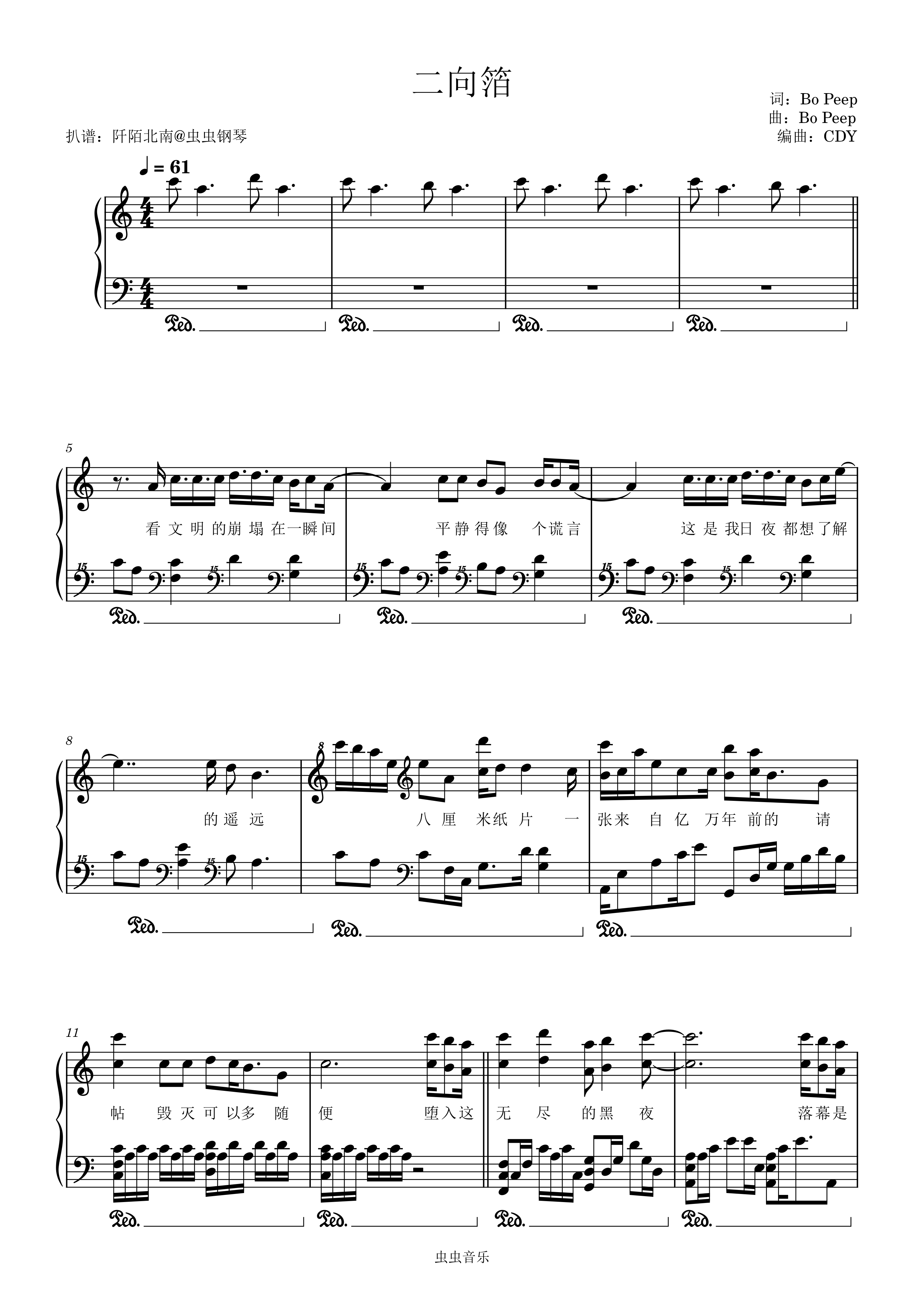 二向箔钢琴简谱 数字双手 Bo Peep