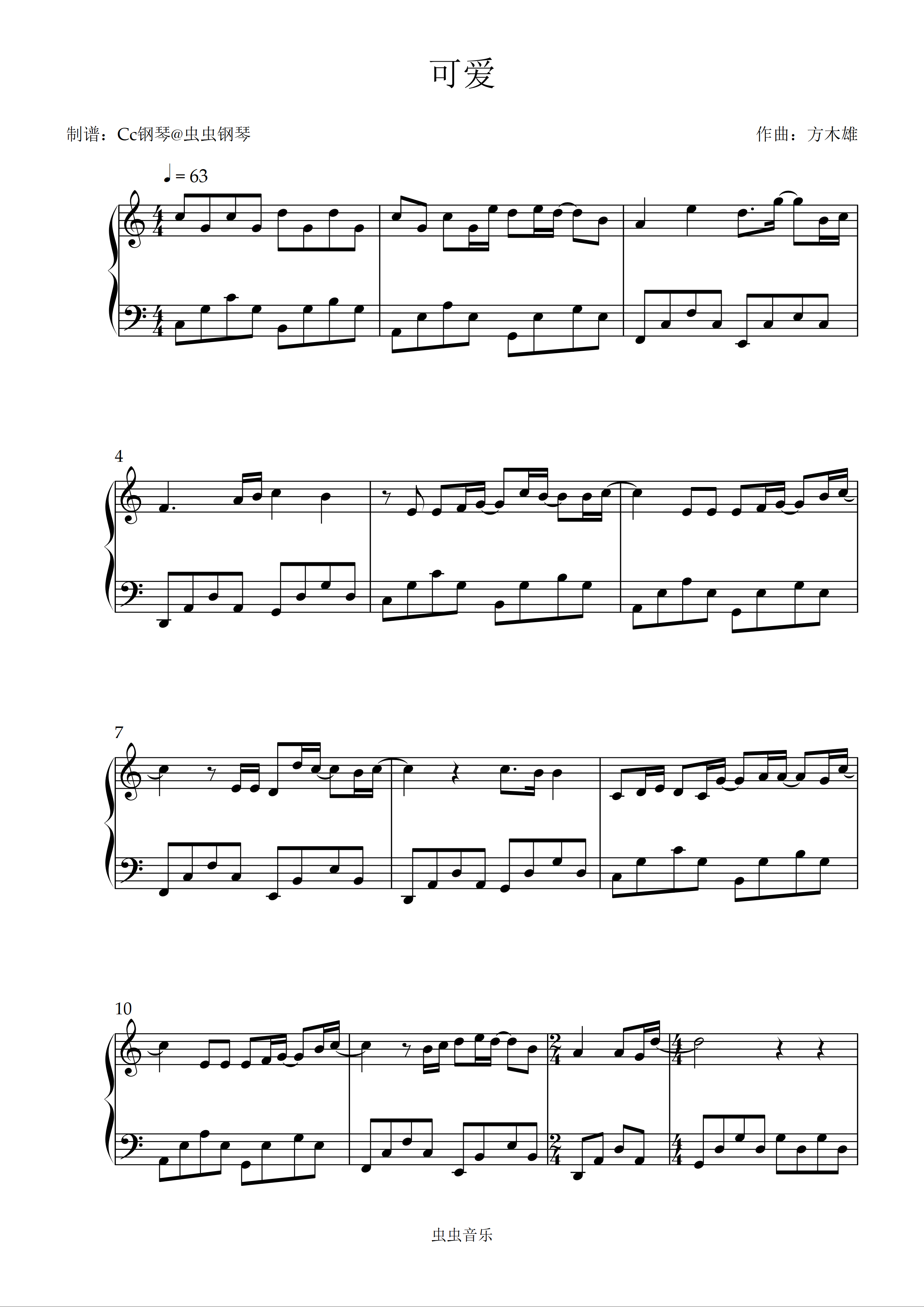 • 可爱的奥古斯汀钢琴简谱 C调 数字双手
