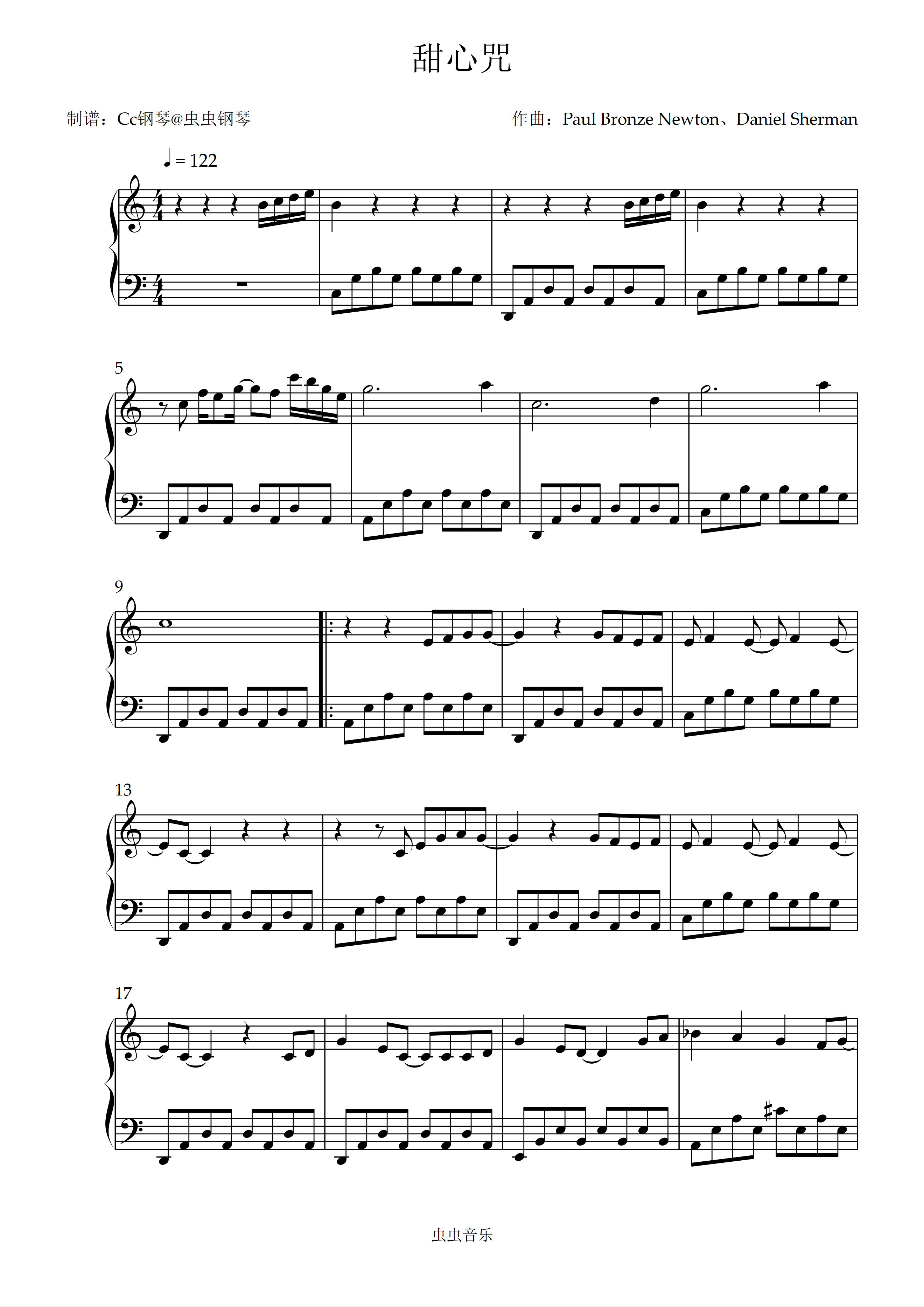 • 霓虹甜心钢琴简谱 C调 数字双手 夏颖/卓越