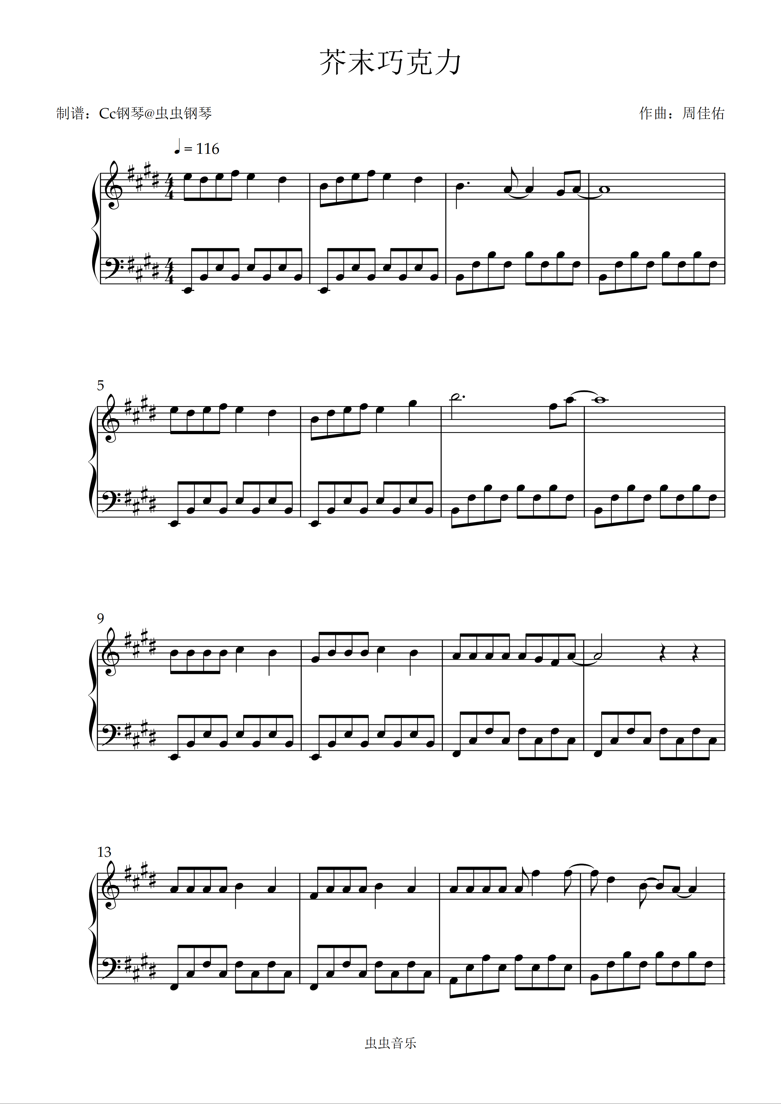 钢琴谱:芥末巧克力 原调 好听易上手