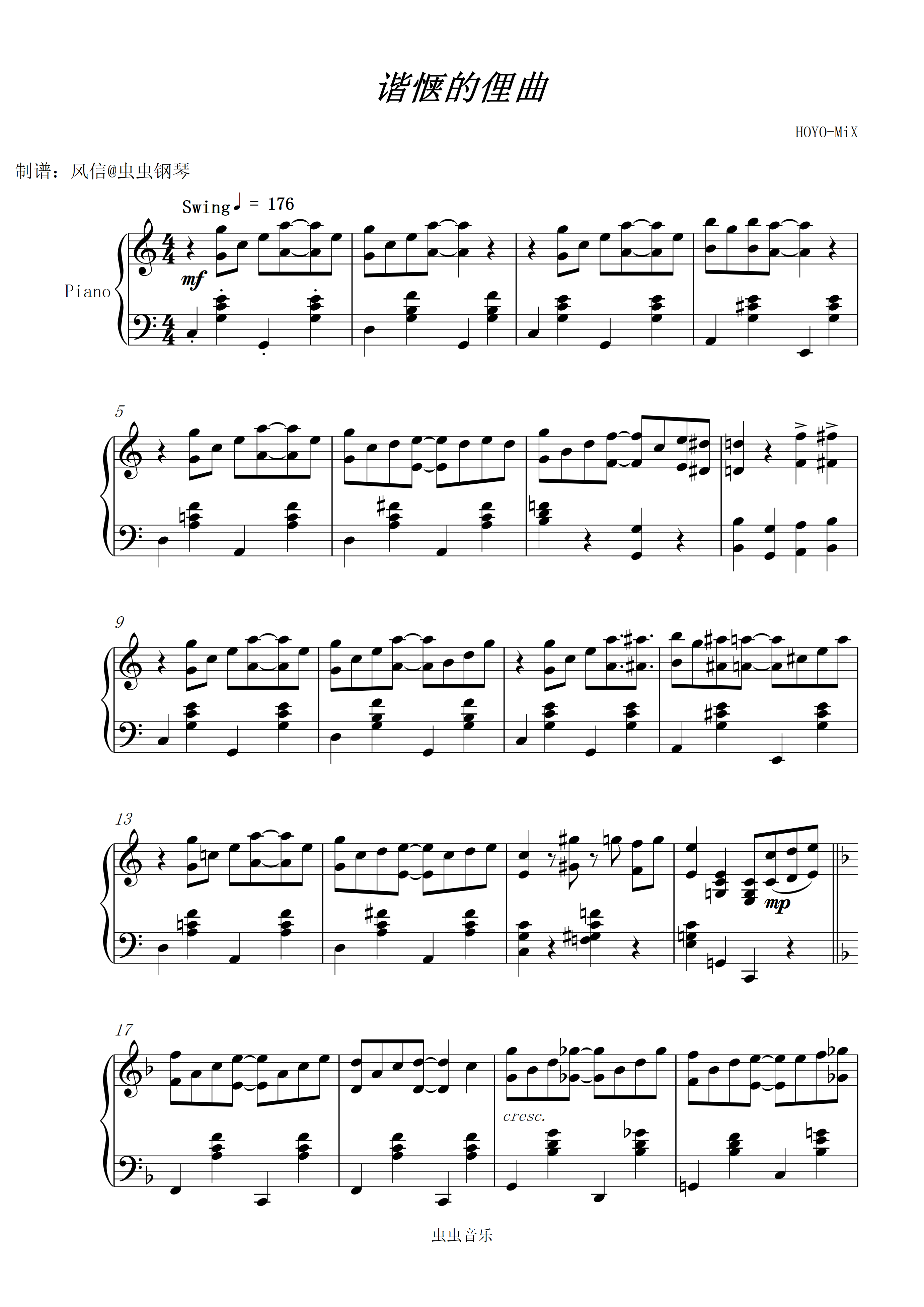 钢琴谱:【原神】谐惬的俚曲 Blissful Little Ditty(好听治愈)