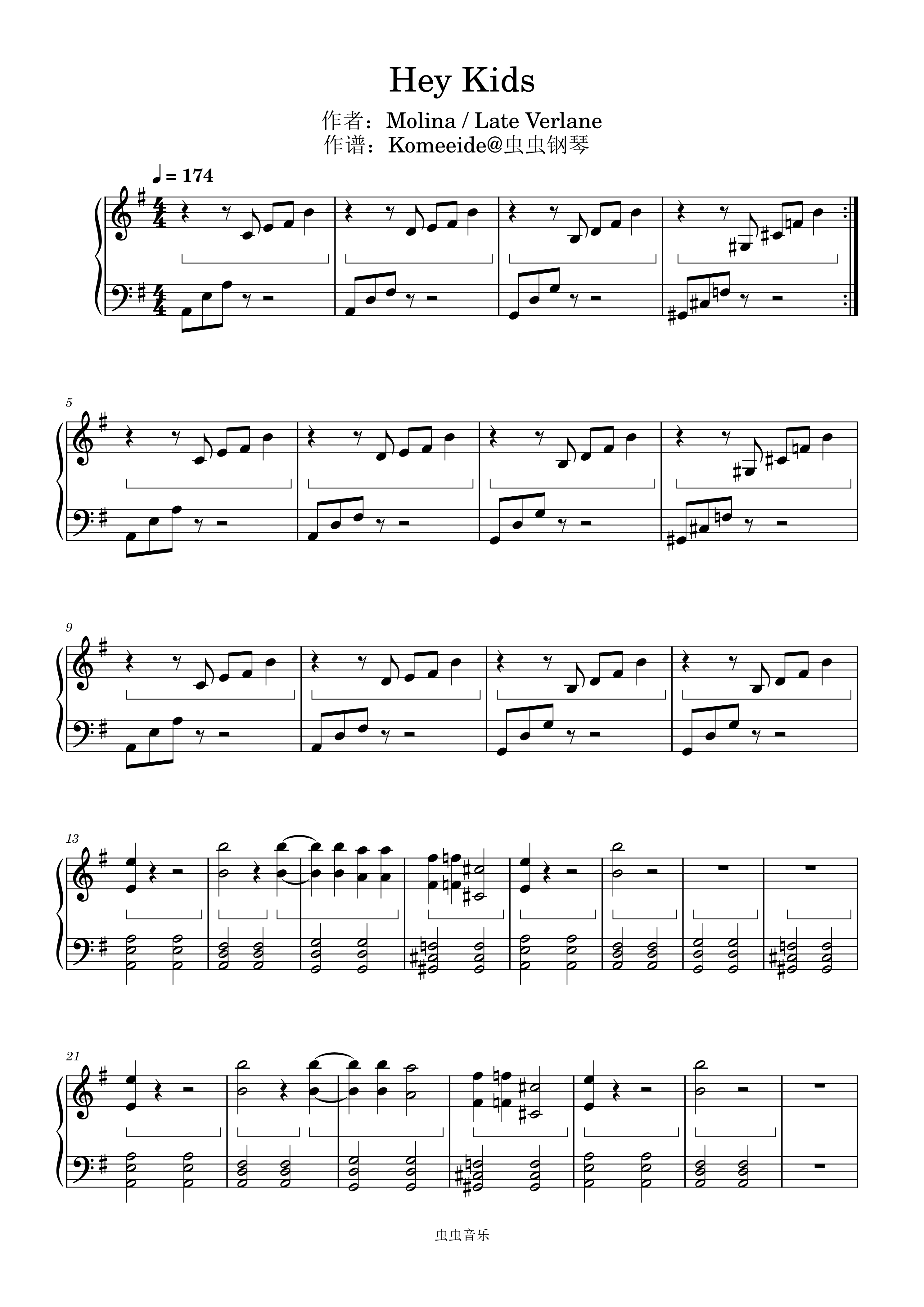 Hey Kids - Molina / Late Verlane(钢琴谱)作谱:Komeeide 五线谱 G/e调