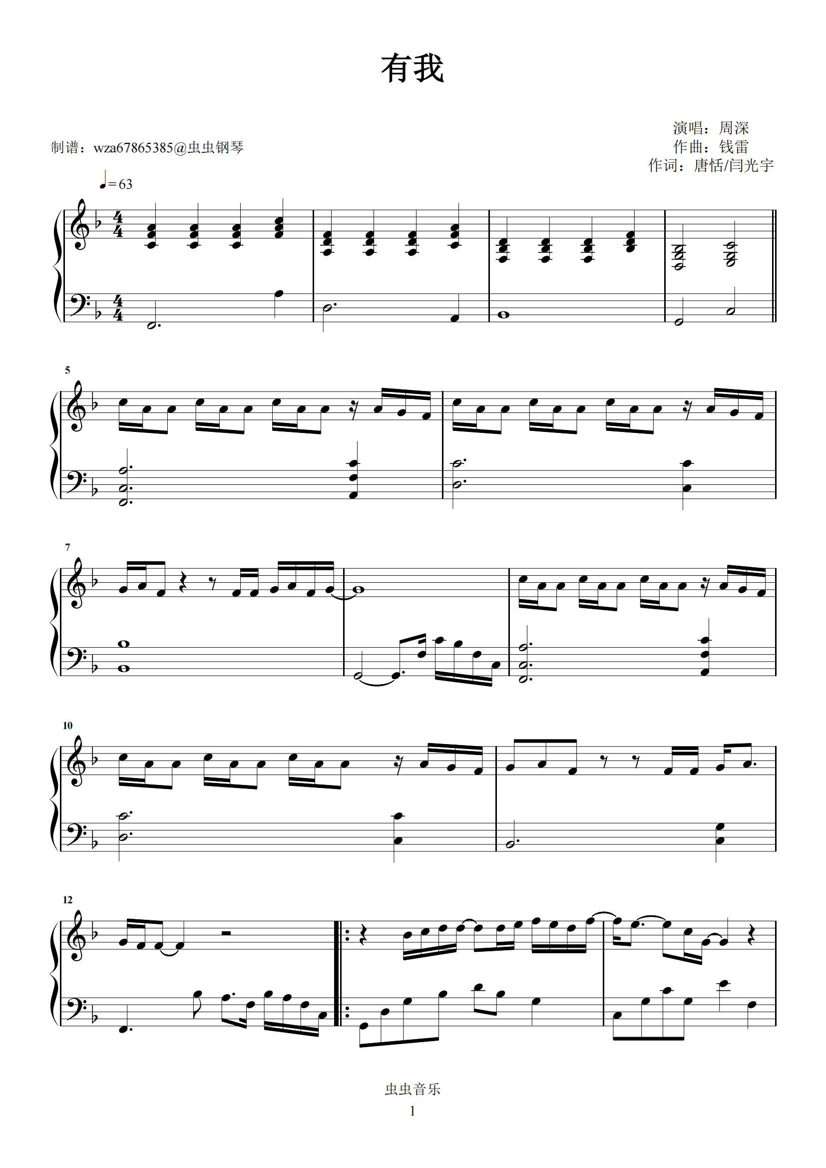 钢琴谱:有我