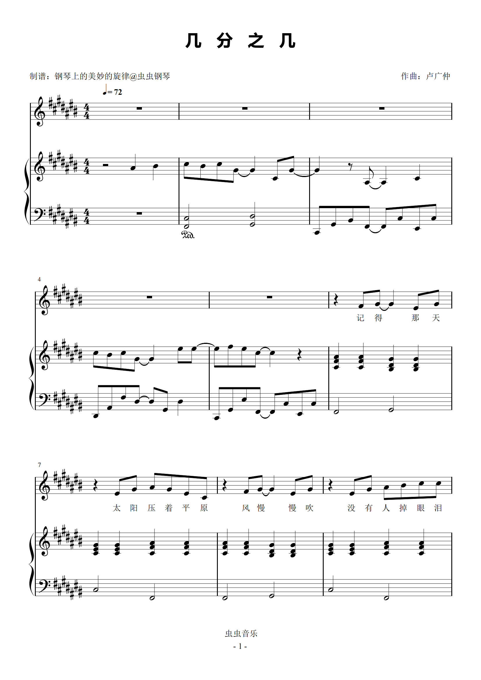 • 几分之几钢琴简谱 C调 数字双手 卢广仲