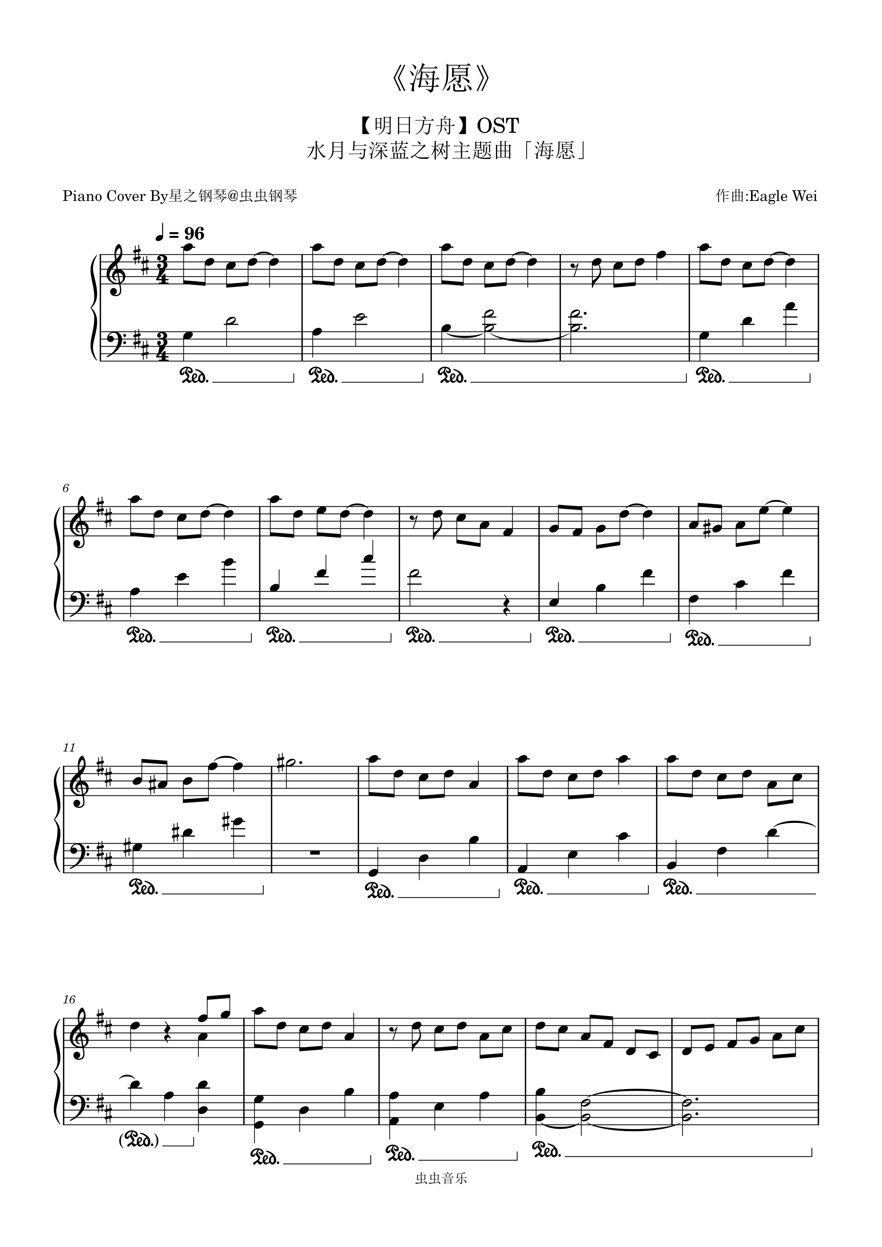钢琴谱:【明日方舟】《海愿》钢琴独奏版~星之钢琴~