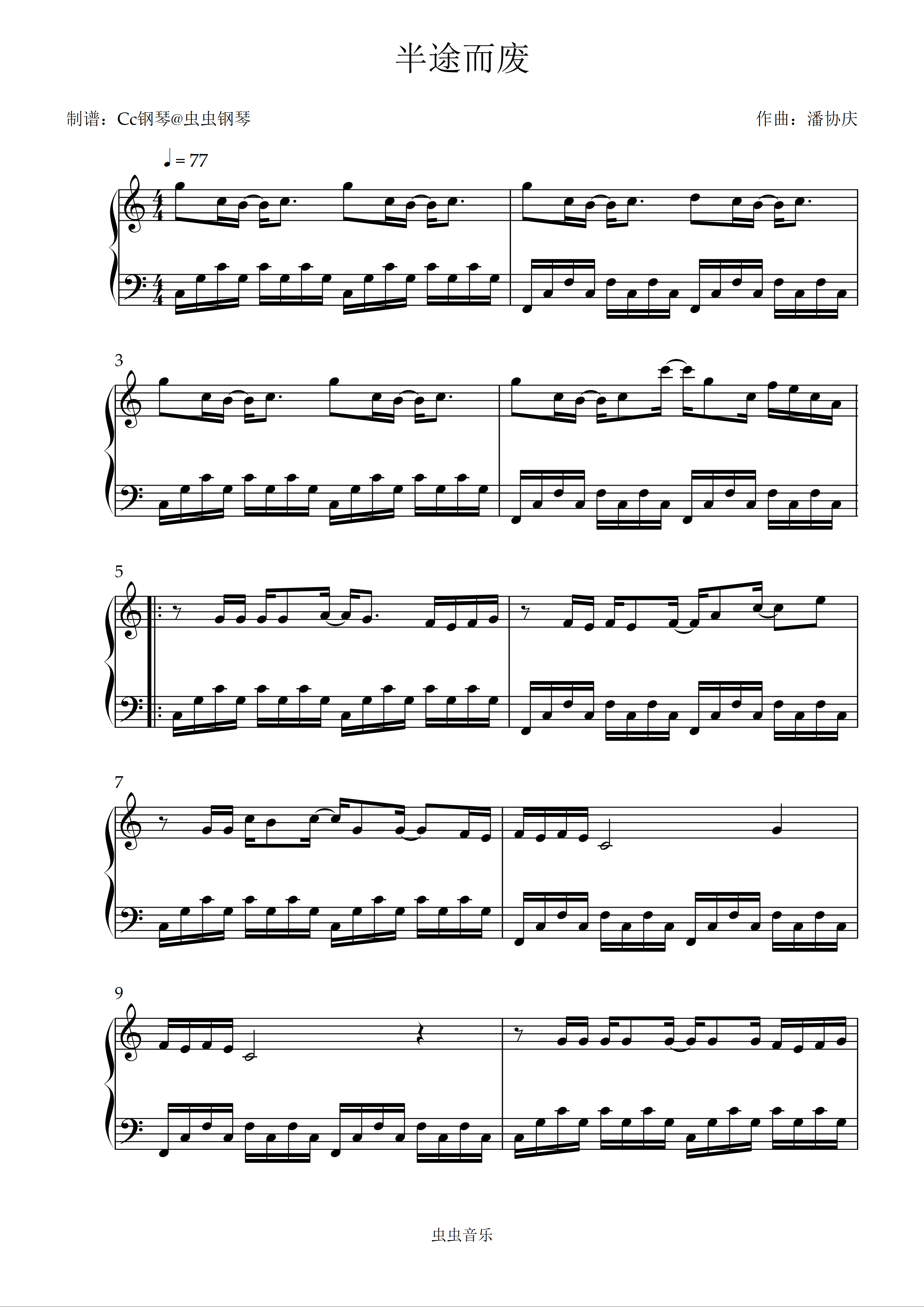 • 半途而废钢琴简谱 F调 数字双手 潘协庆