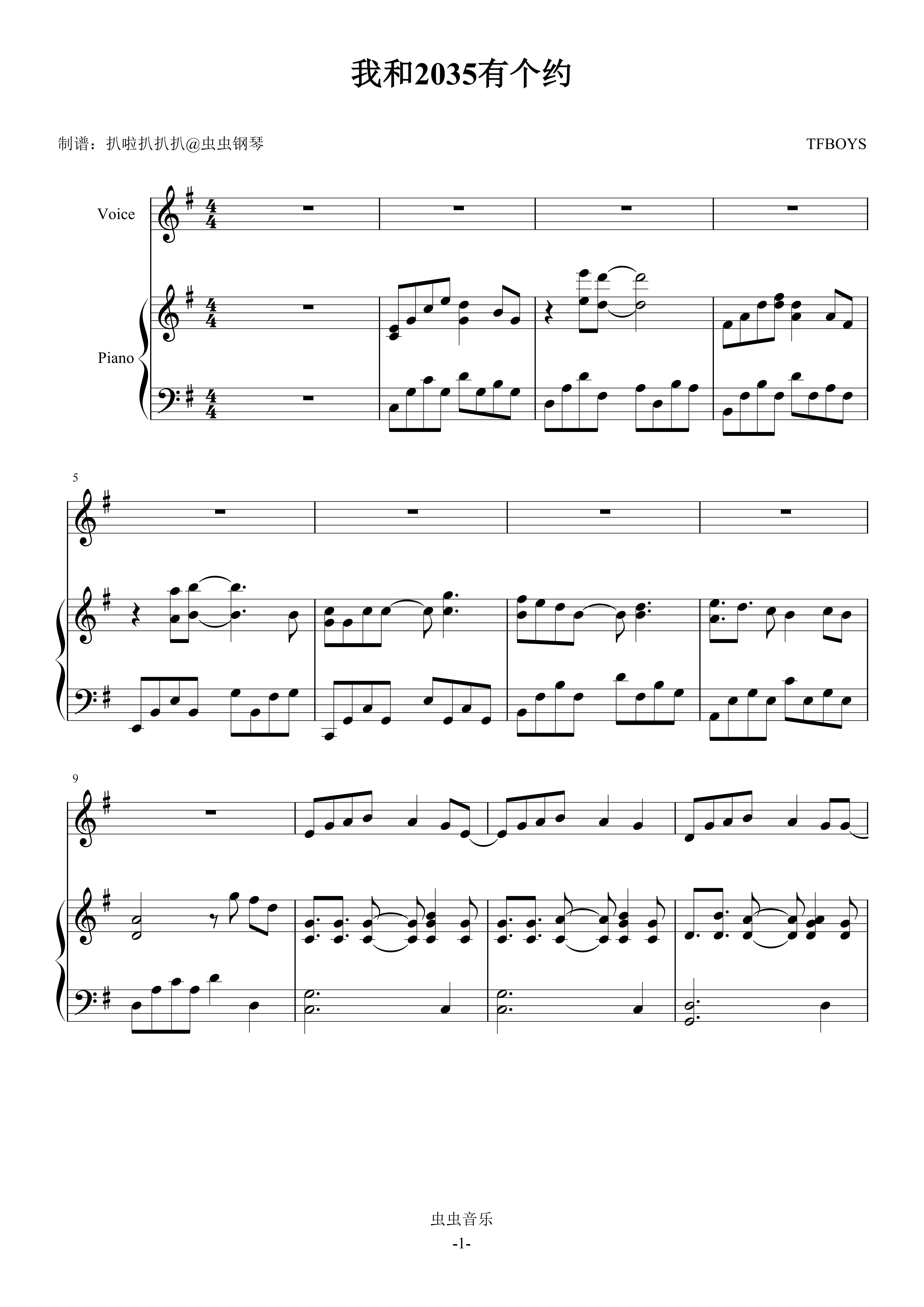 钢琴谱:《我和2035有个约》-TFBOYS-钢琴伴奏谱