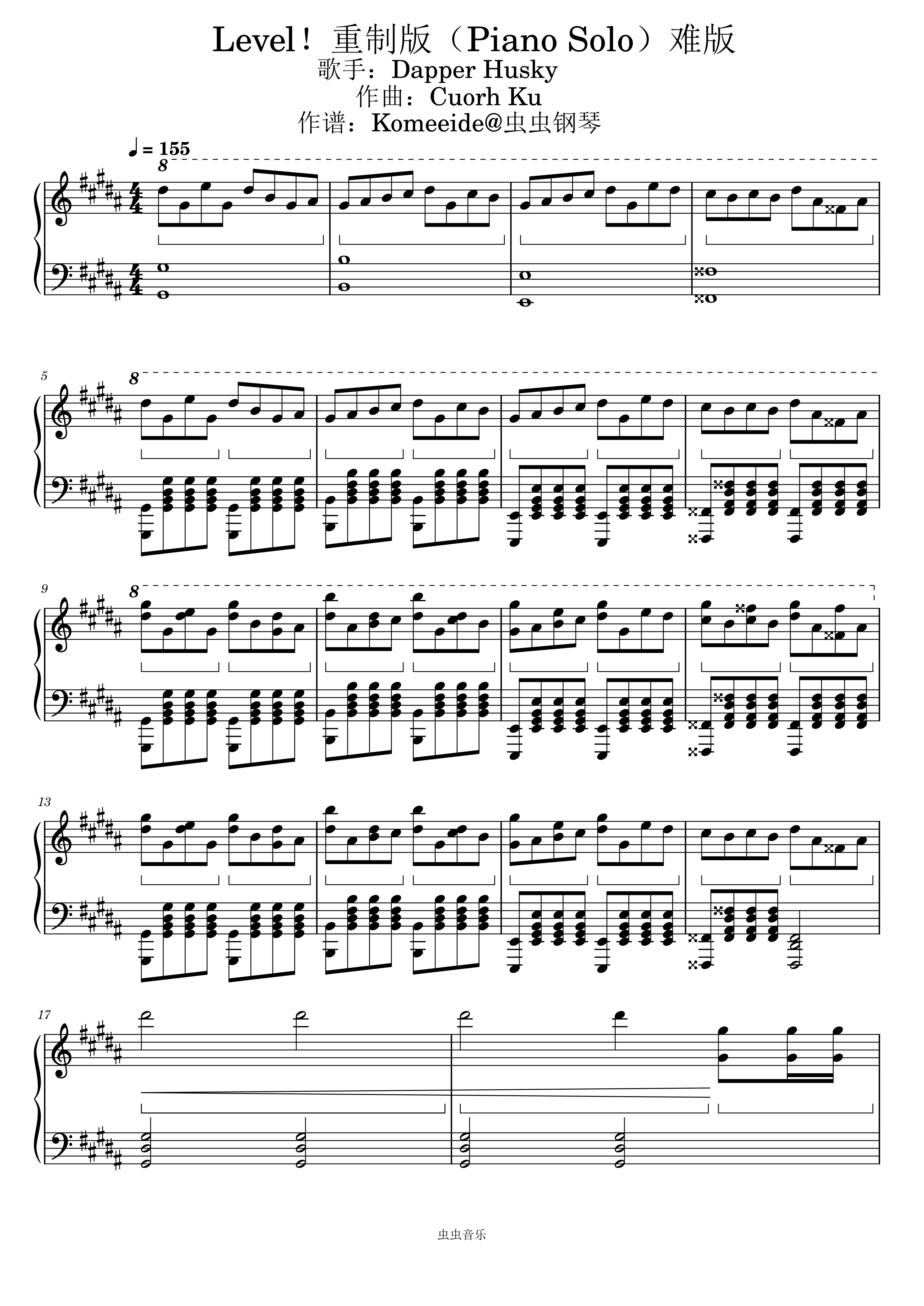 Level!重制版(Piano Solo)难版 五线谱 作者:Dapper Husky 作谱:Komeeide B/♯g调