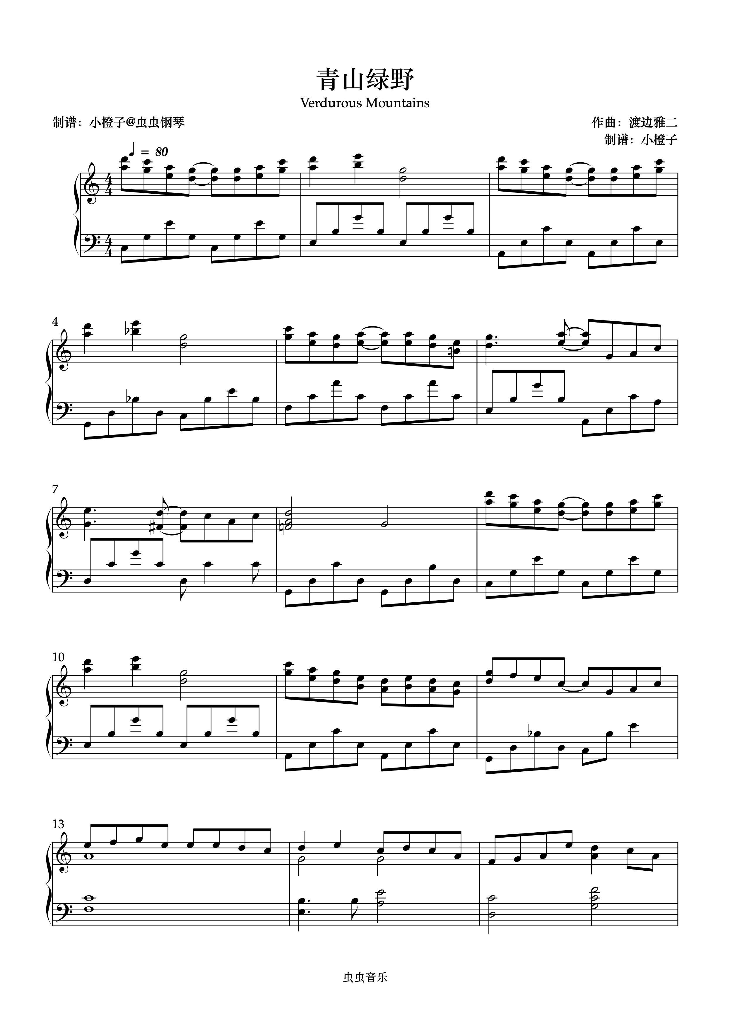 钢琴谱:青山绿野 / Verdurous Mountains -渡边雅二//C大调版//爱情公寓片段配乐