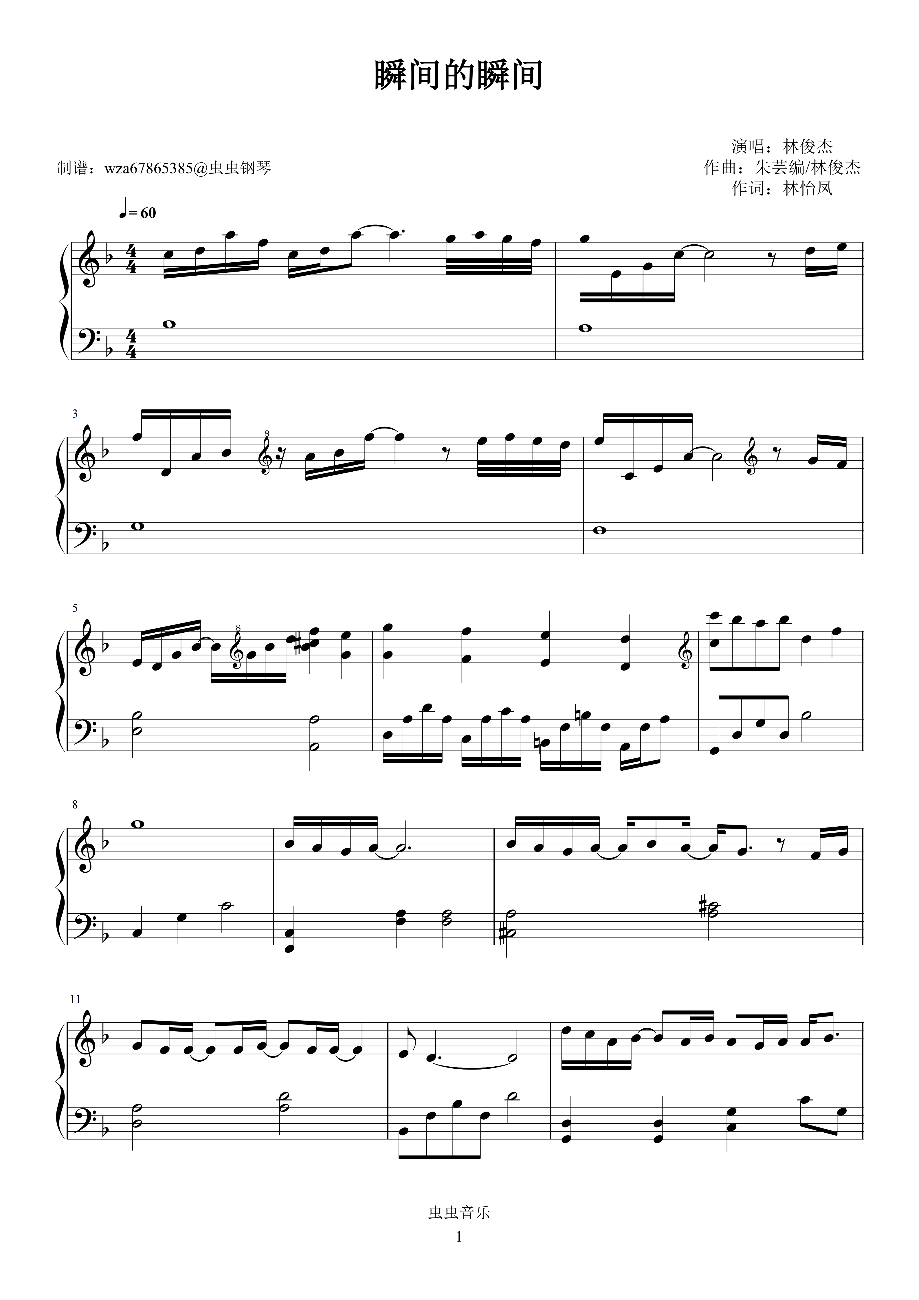 瞬间的瞬间钢琴简谱 数字双手 林怡凤