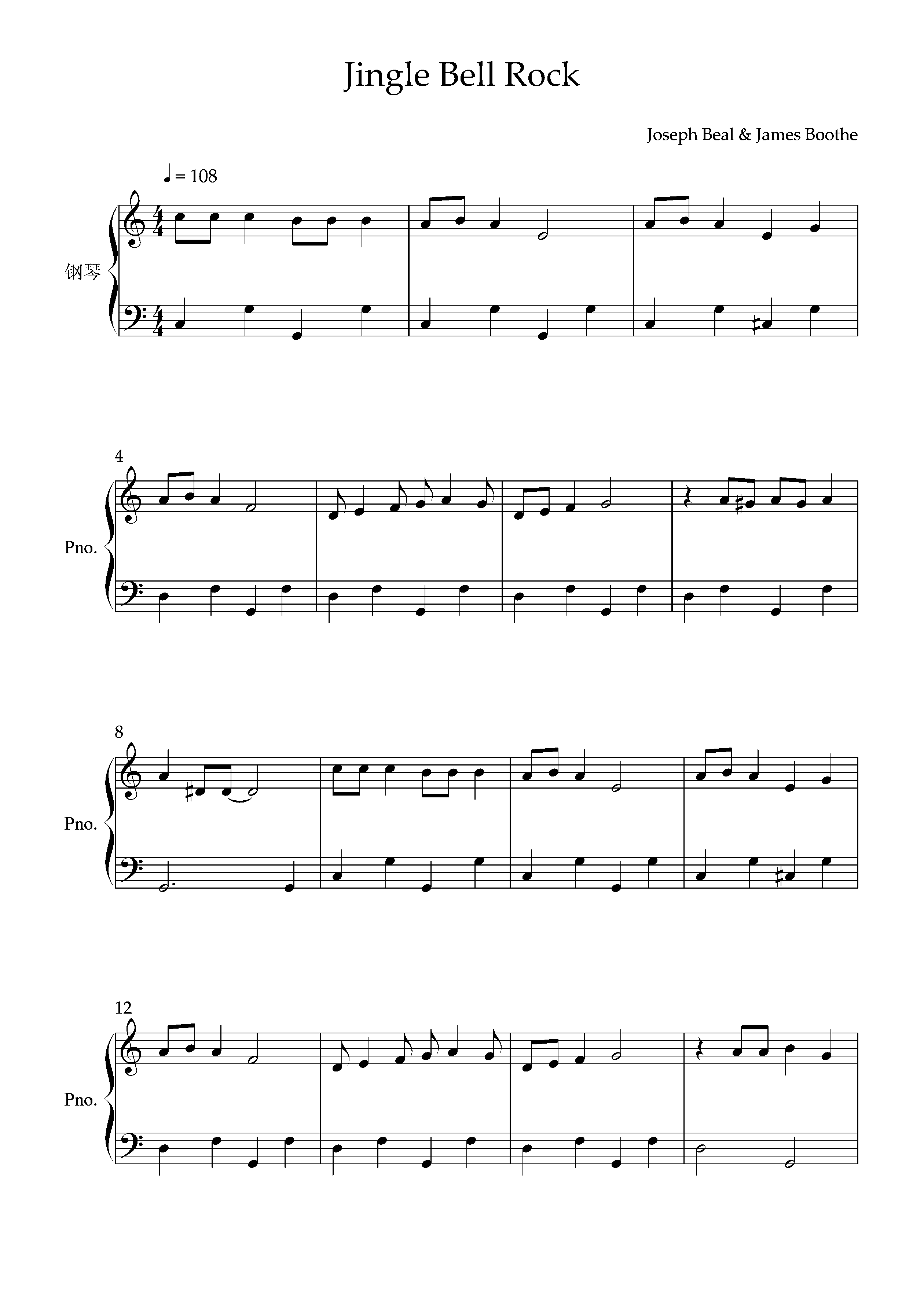 • Jingle Bell Rock钢琴简谱 C调 数字双手