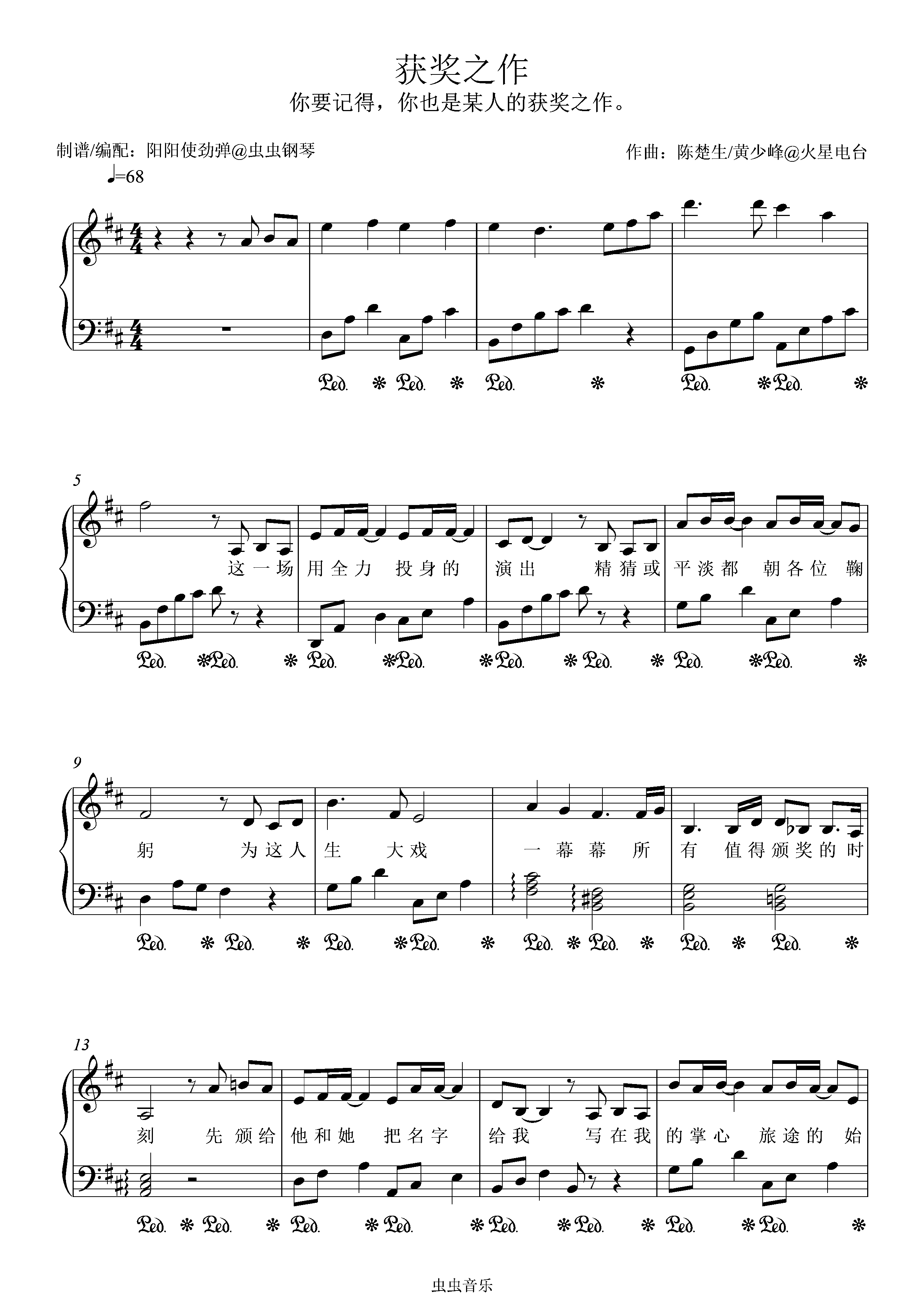 • 不为谁而作的歌钢琴简谱 D调 数字双手 林秋离