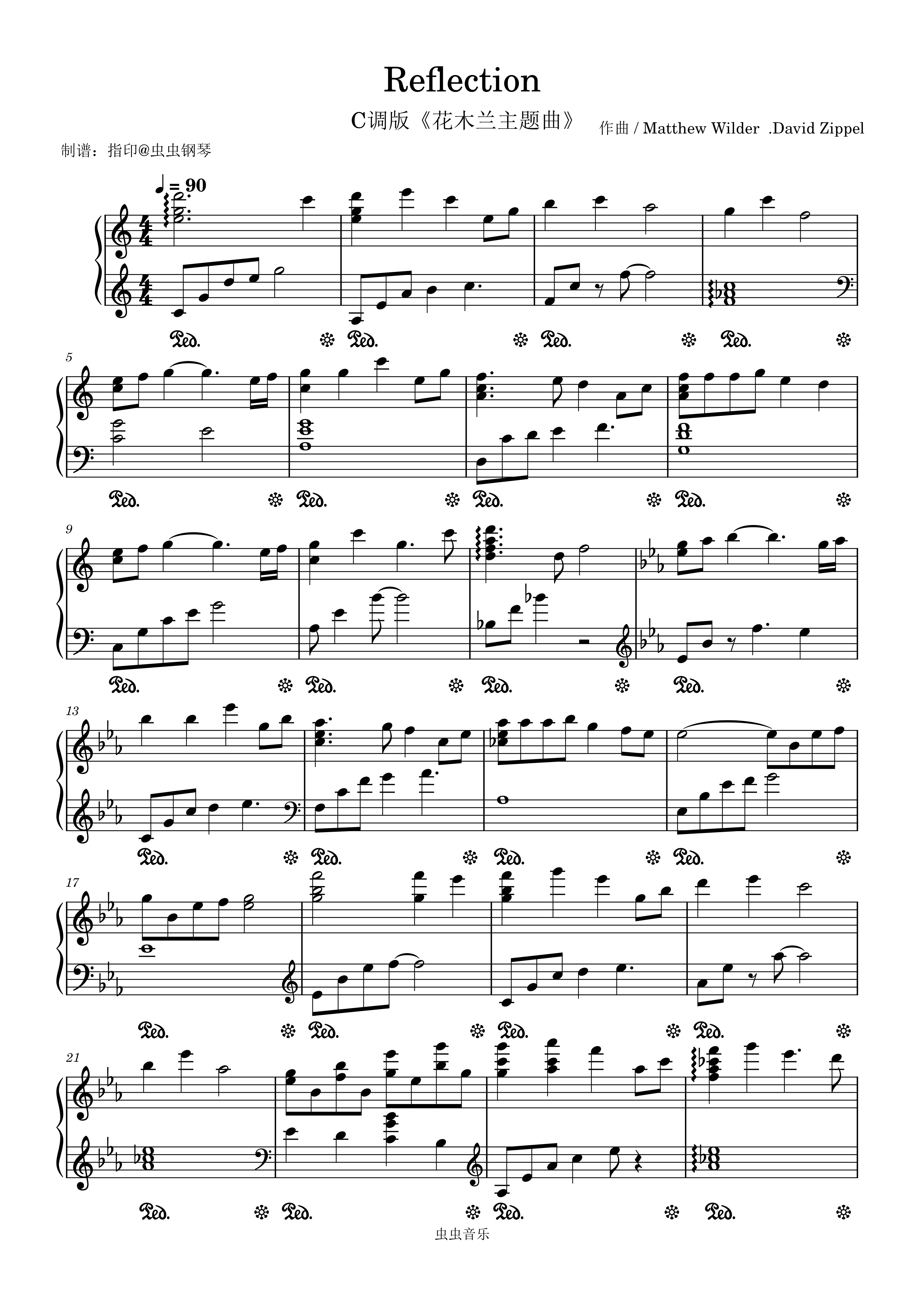 • Reflection (花木兰)钢琴简谱 C调 数字双手 David Zippel/Matthew Wilder