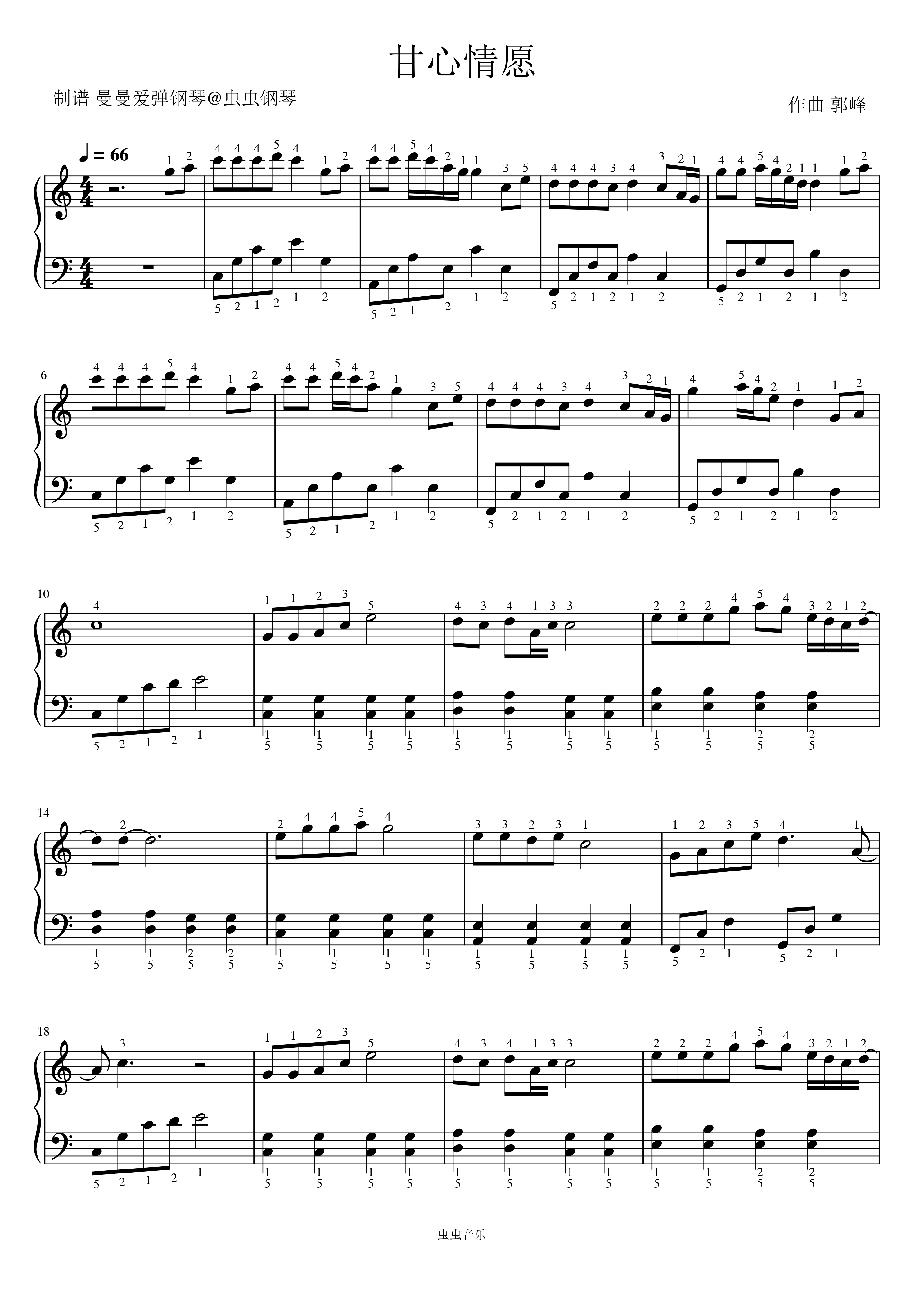 • 甘心情愿钢琴简谱 F#调 数字双手 郭峰