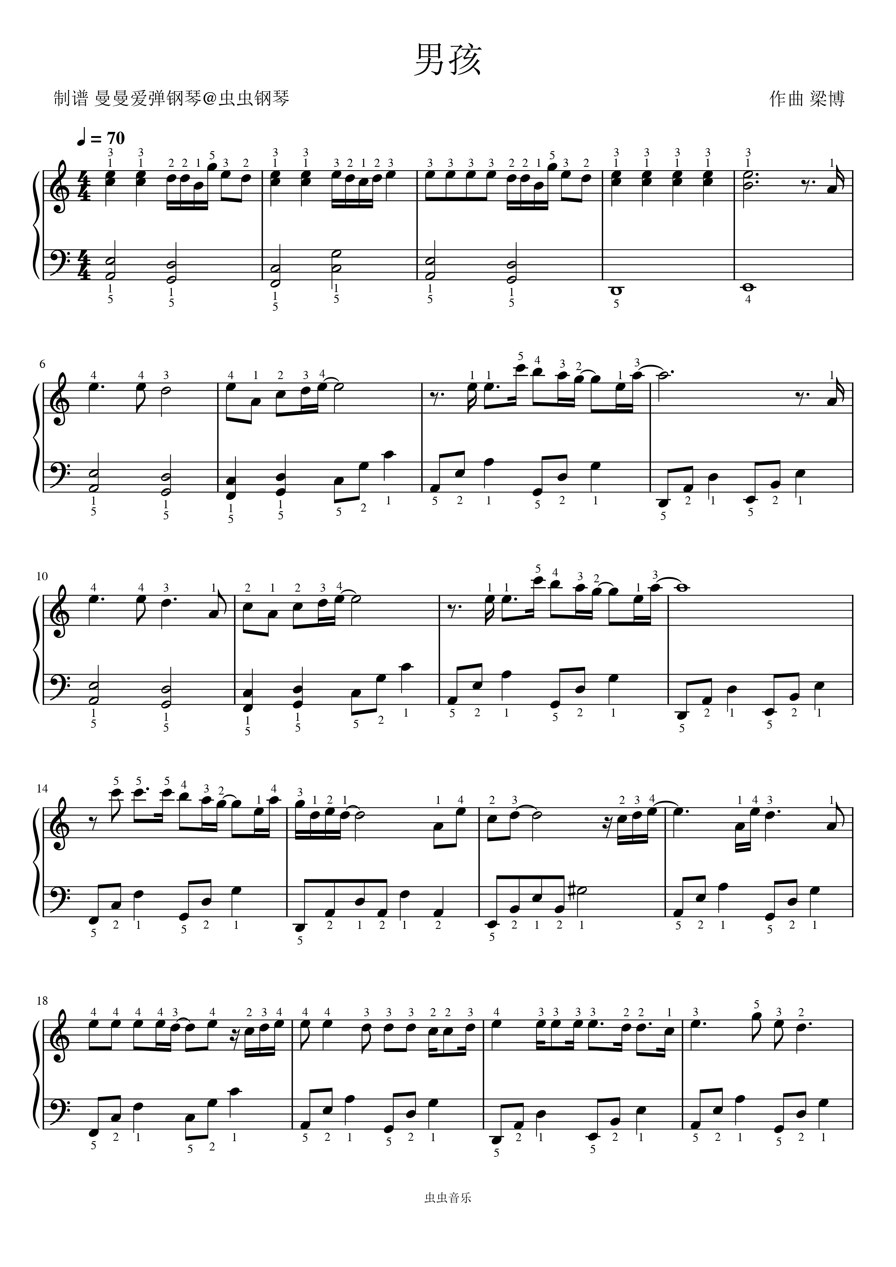 • 男孩钢琴简谱 C调 数字双手 梁博
