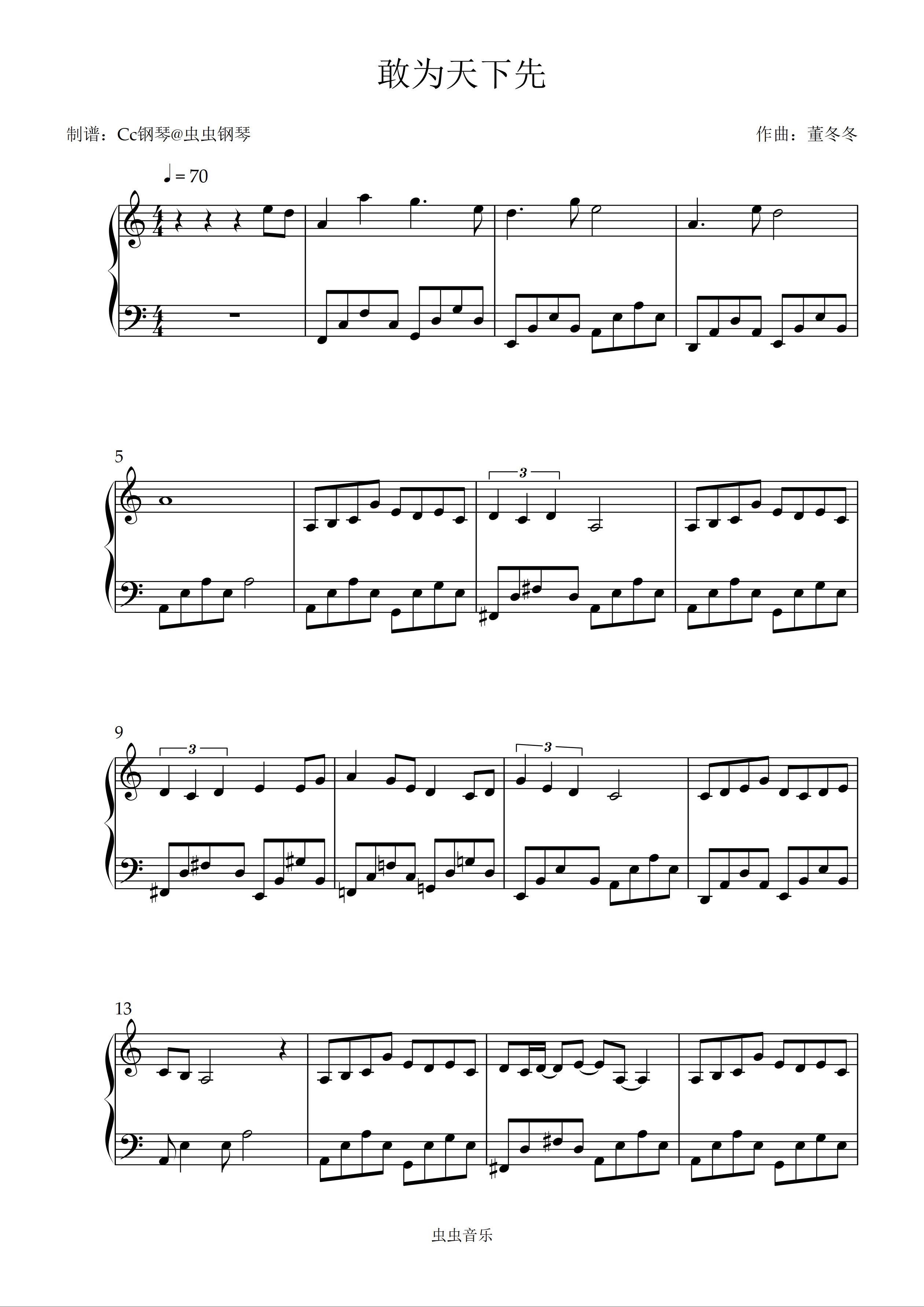 • 敢为天下先钢琴简谱 Bb调 数字双手