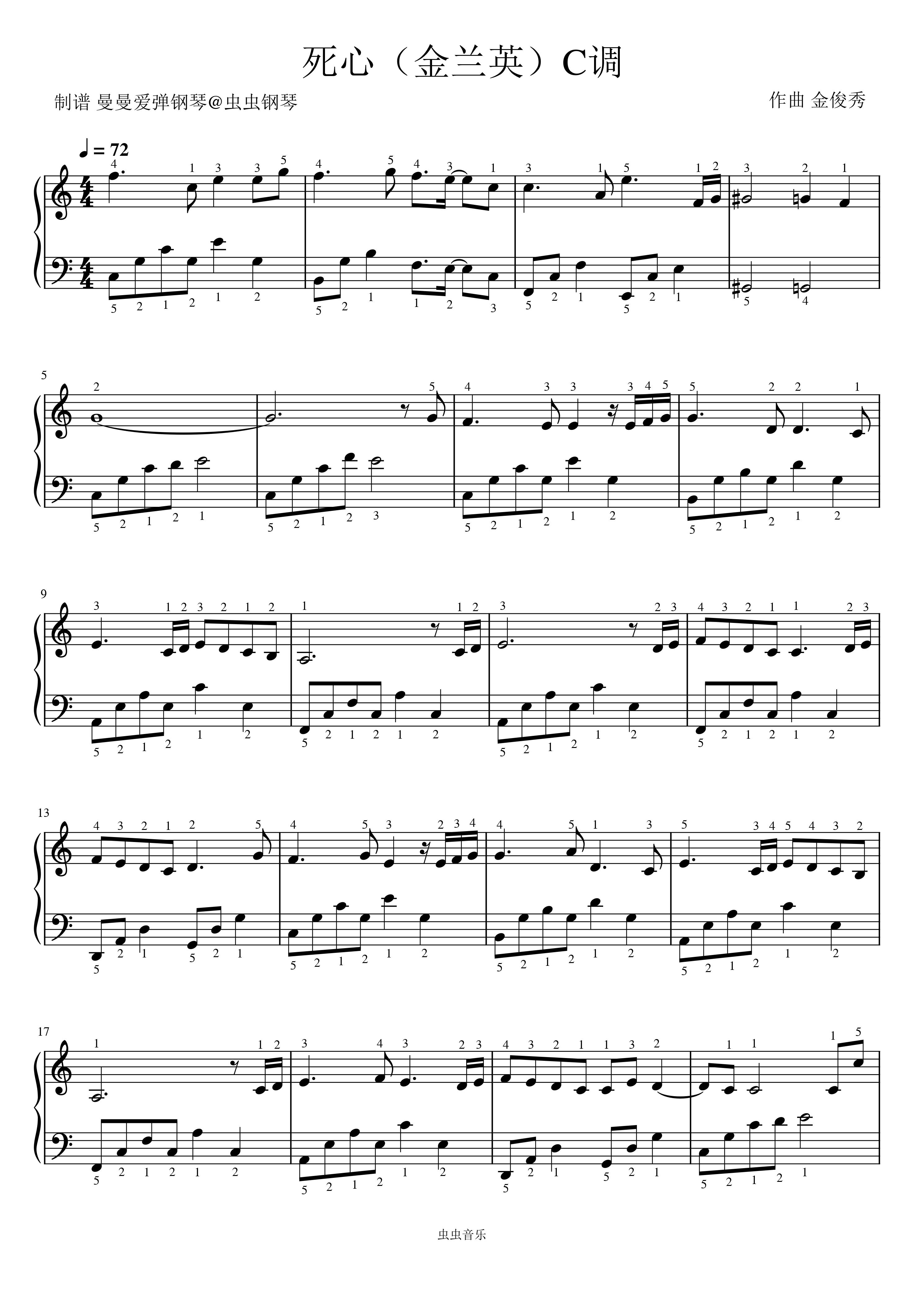 钢琴谱:《死心》金俊秀C调 简易 好听 好弹