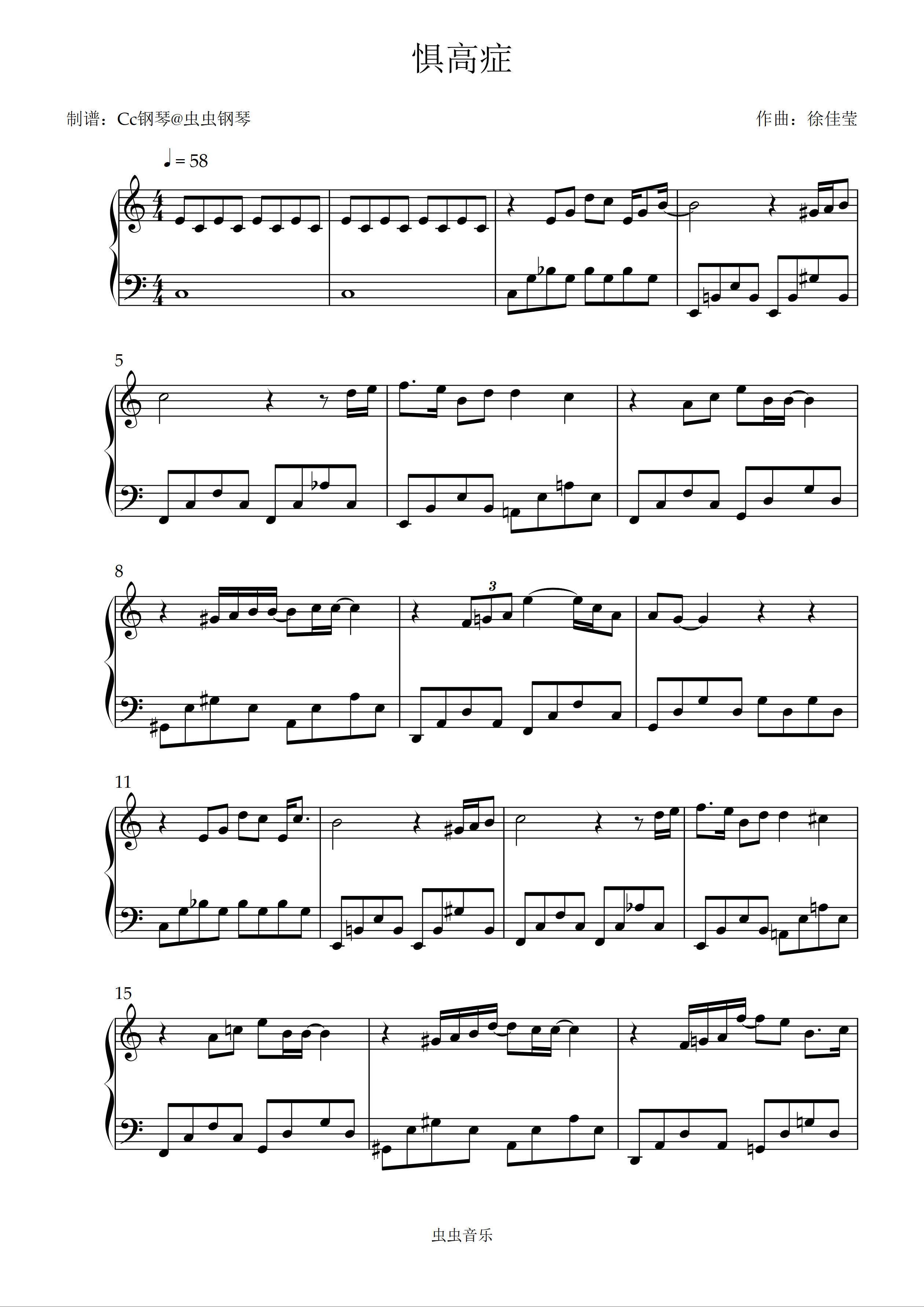 钢琴谱:惧高症 C调 好听易上手