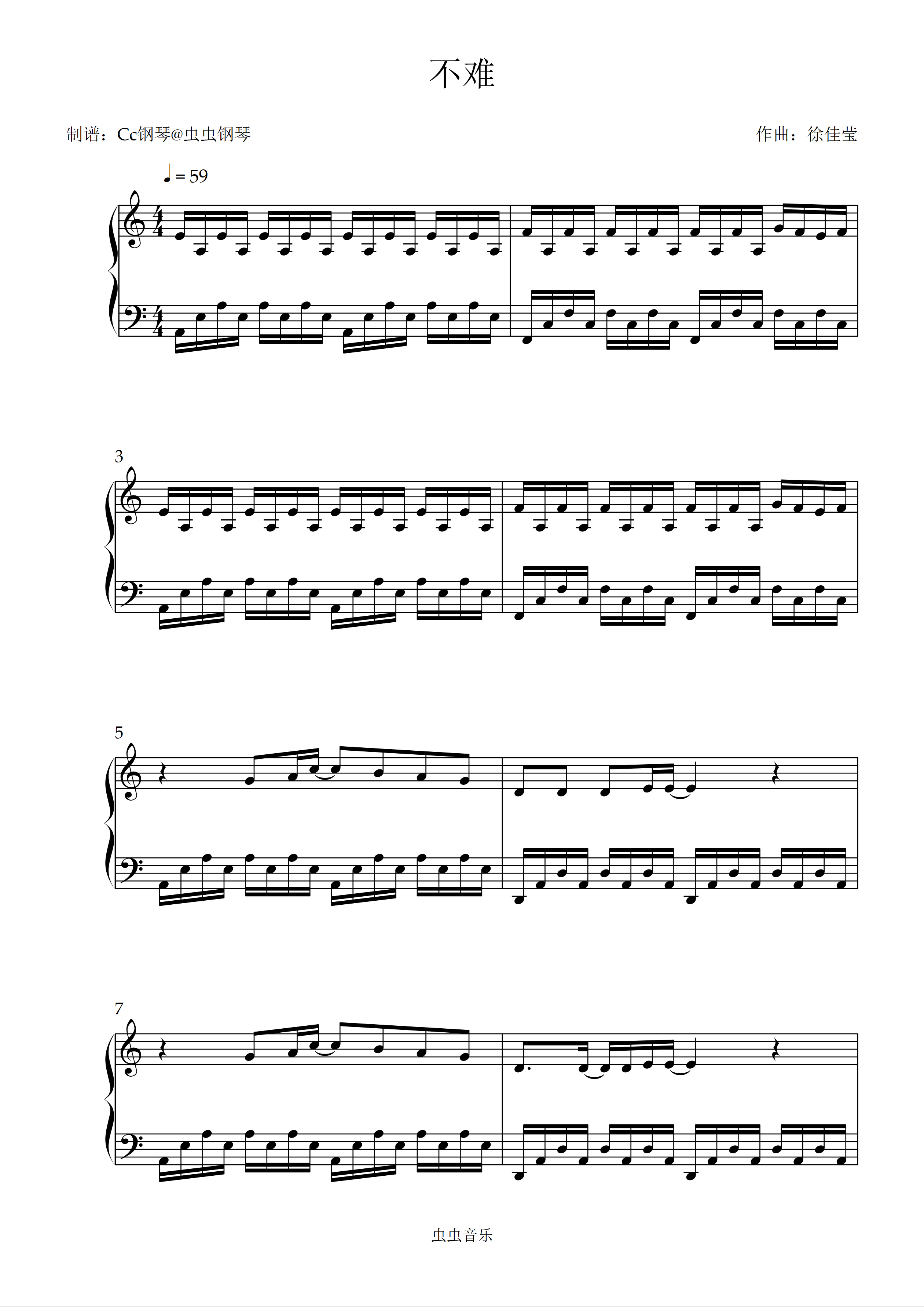 • 难却钢琴简谱 d调 数字双手 Cyan
