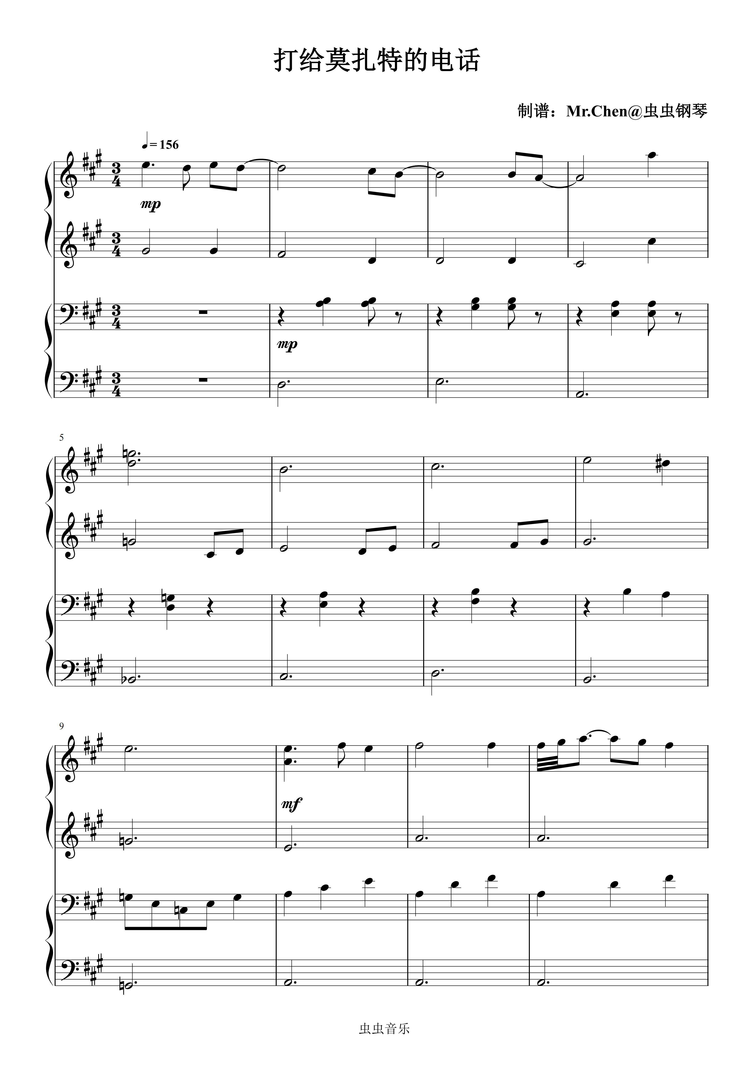 钢琴谱:打给莫扎特的电话 (四手联弹)