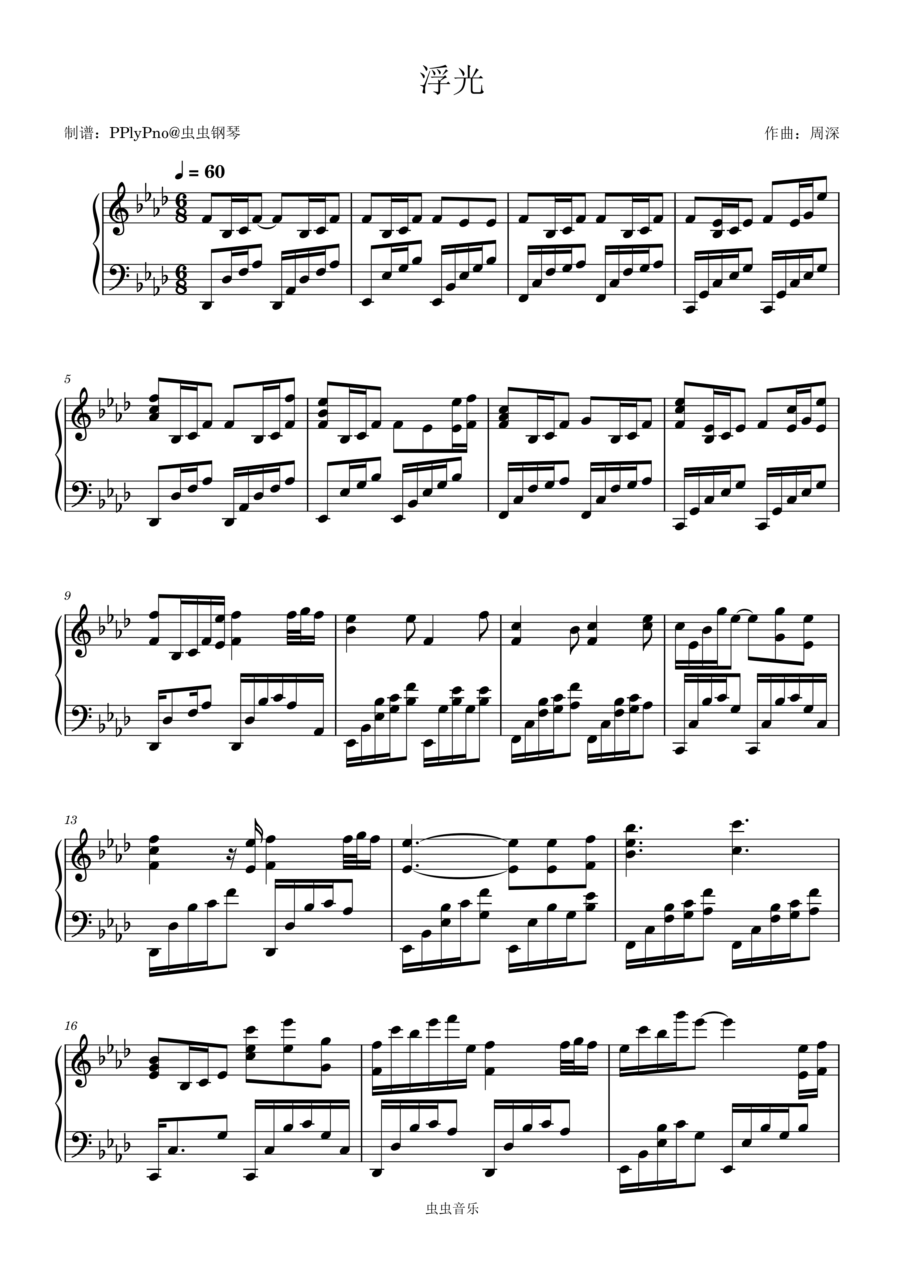 • 浮光钢琴简谱 Ab调 数字双手 唐思淼,皱念慈