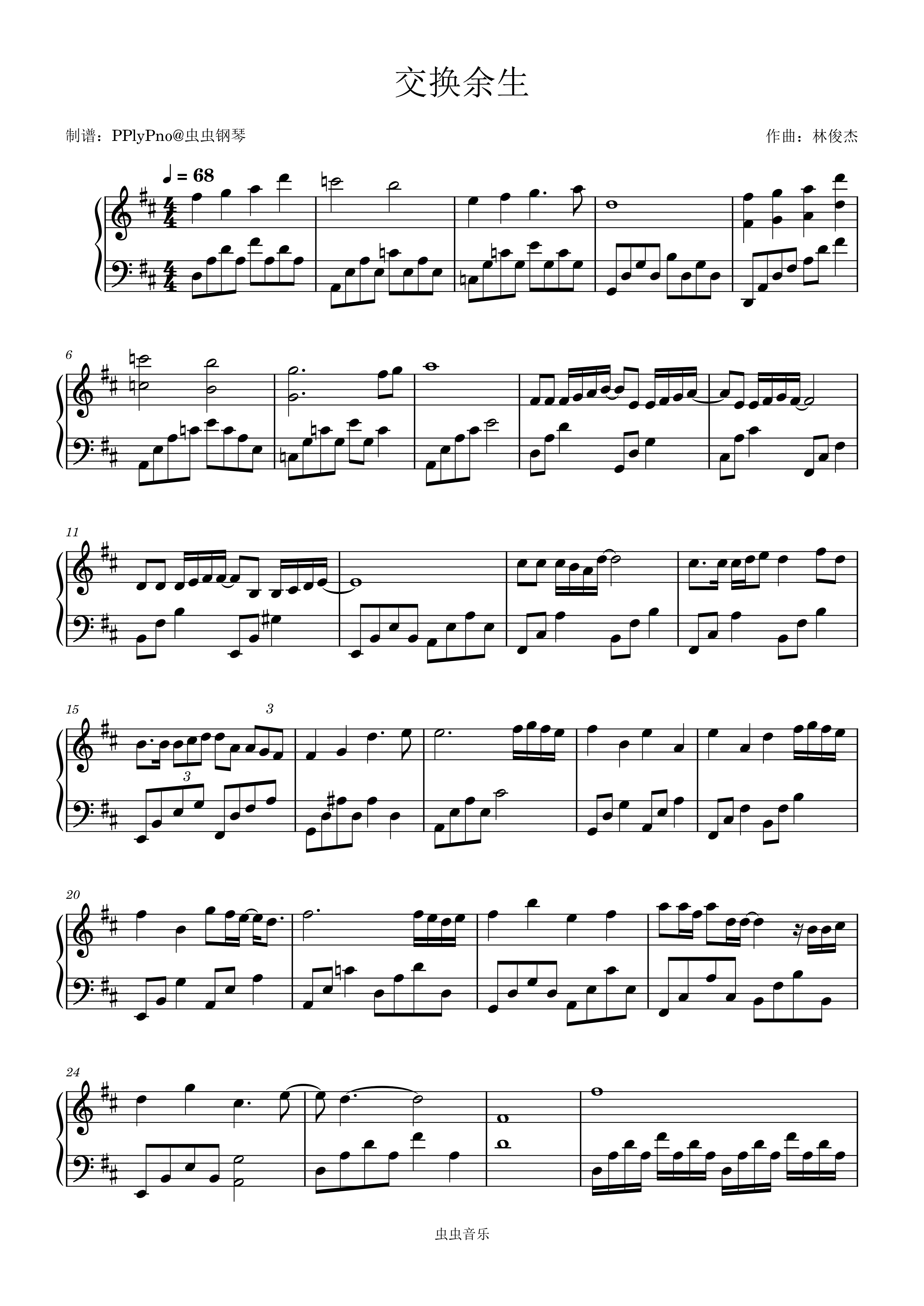 • 交换余生钢琴简谱 D调 数字双手 易家扬
