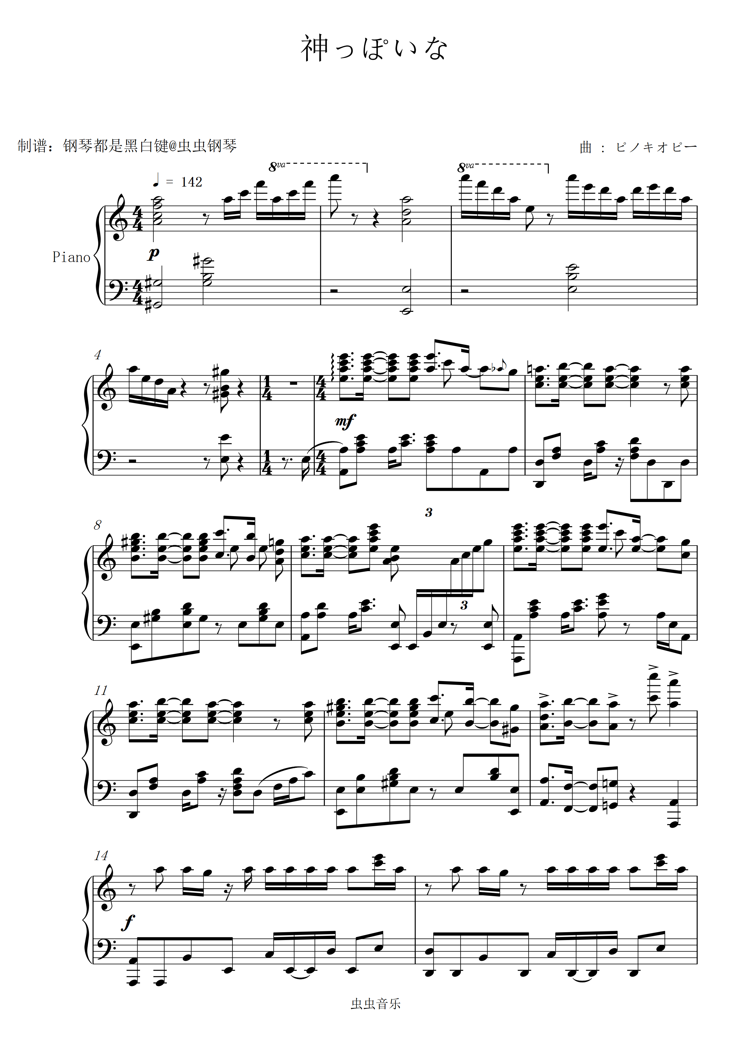 钢琴谱:【初音ミク】神っぽいな (像神一样呐)