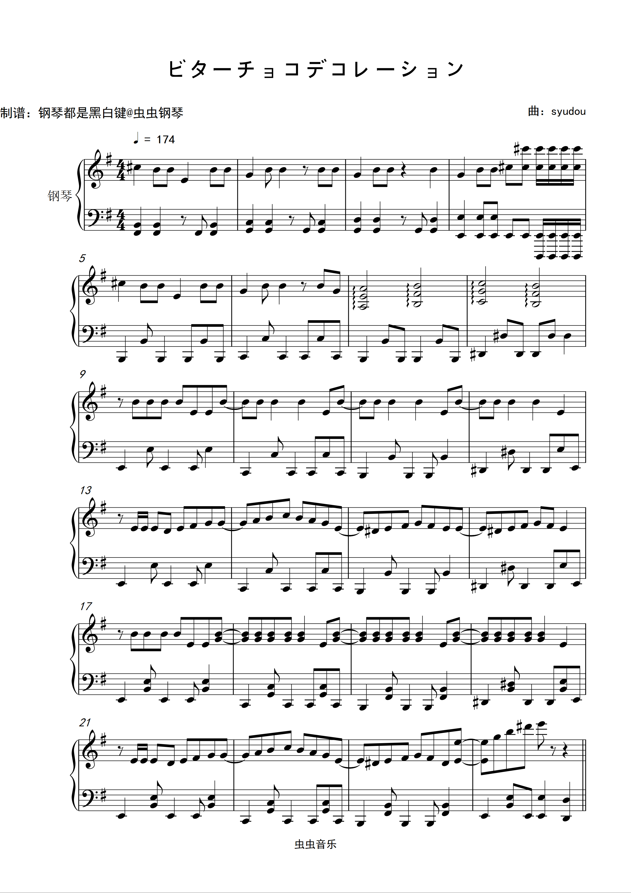 ビターチョコデコレーション钢琴简谱 数字双手 syudou