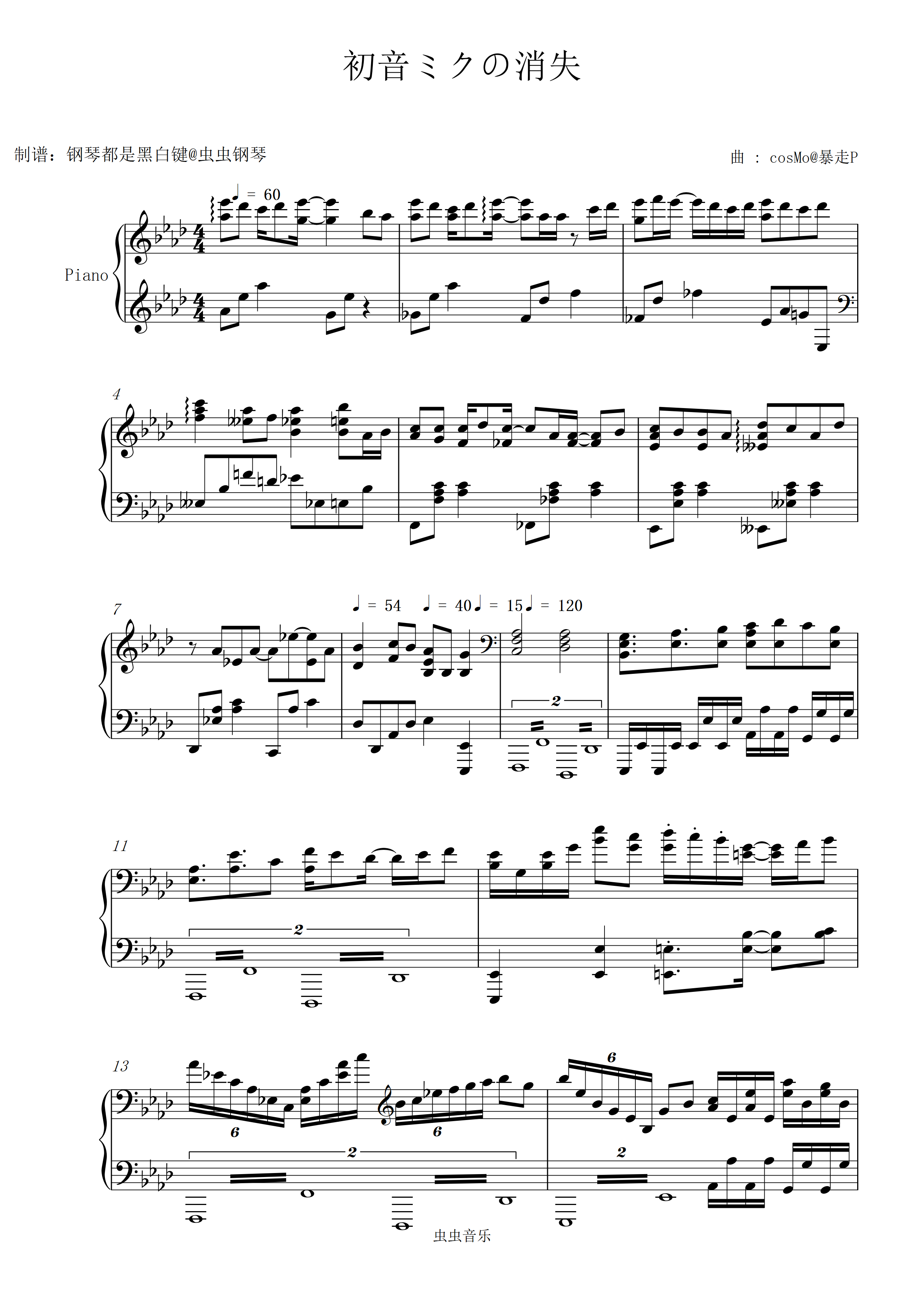 • 初音ミクの消失钢琴简谱 Ab调 数字双手 cosMo@暴走P