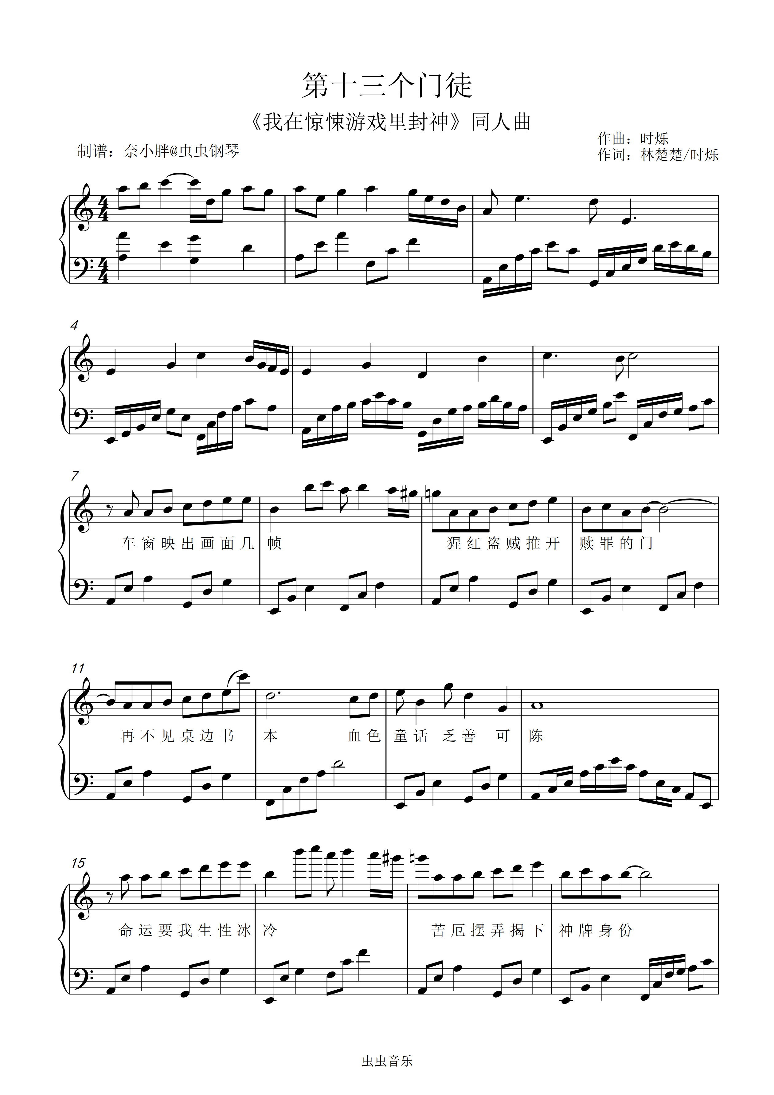 钢琴谱:第十三个信徒-《我在无限游戏里封神》同人曲