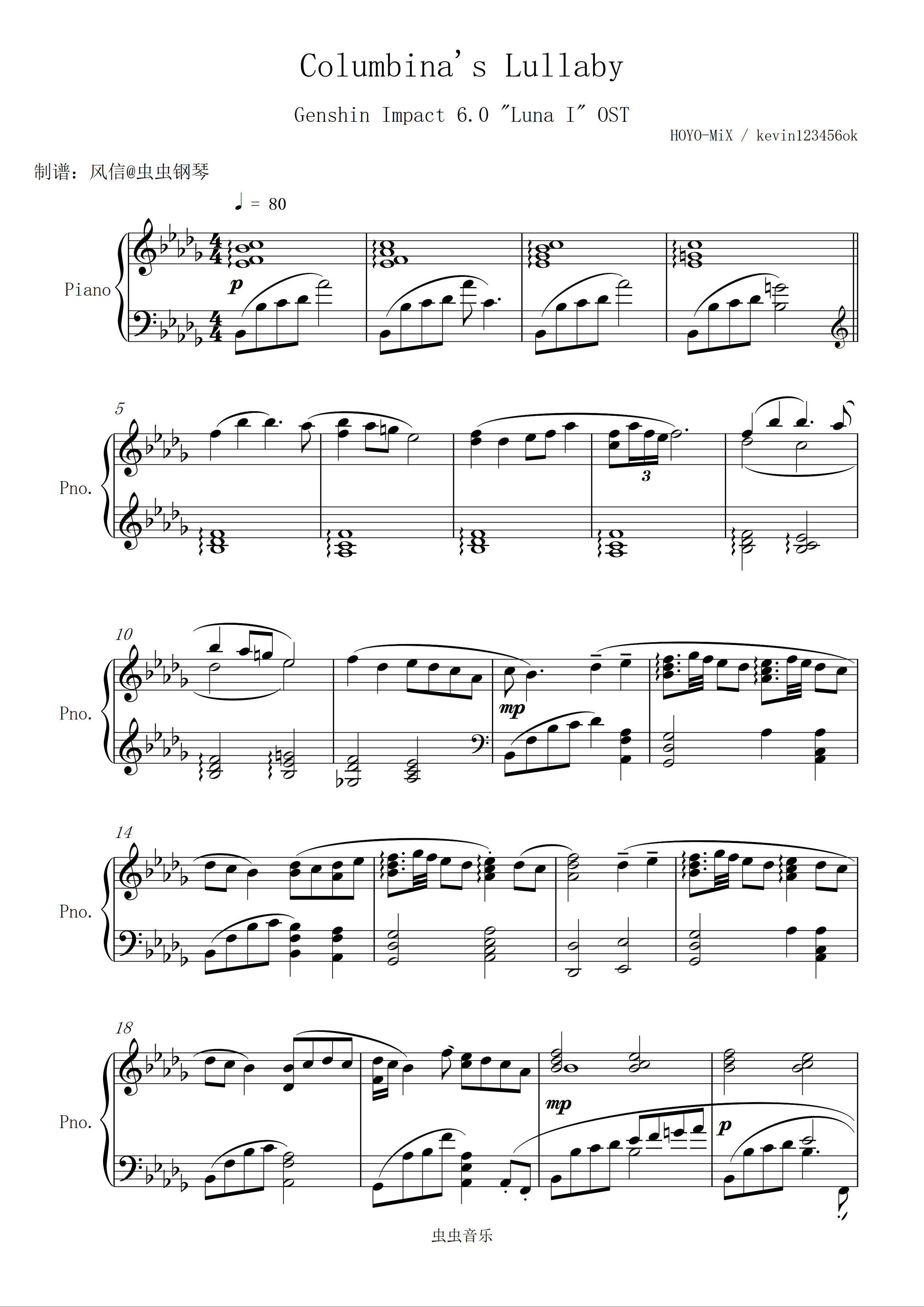 钢琴谱:《原神》哥伦比娅BGM《Columbina’s Lullaby》