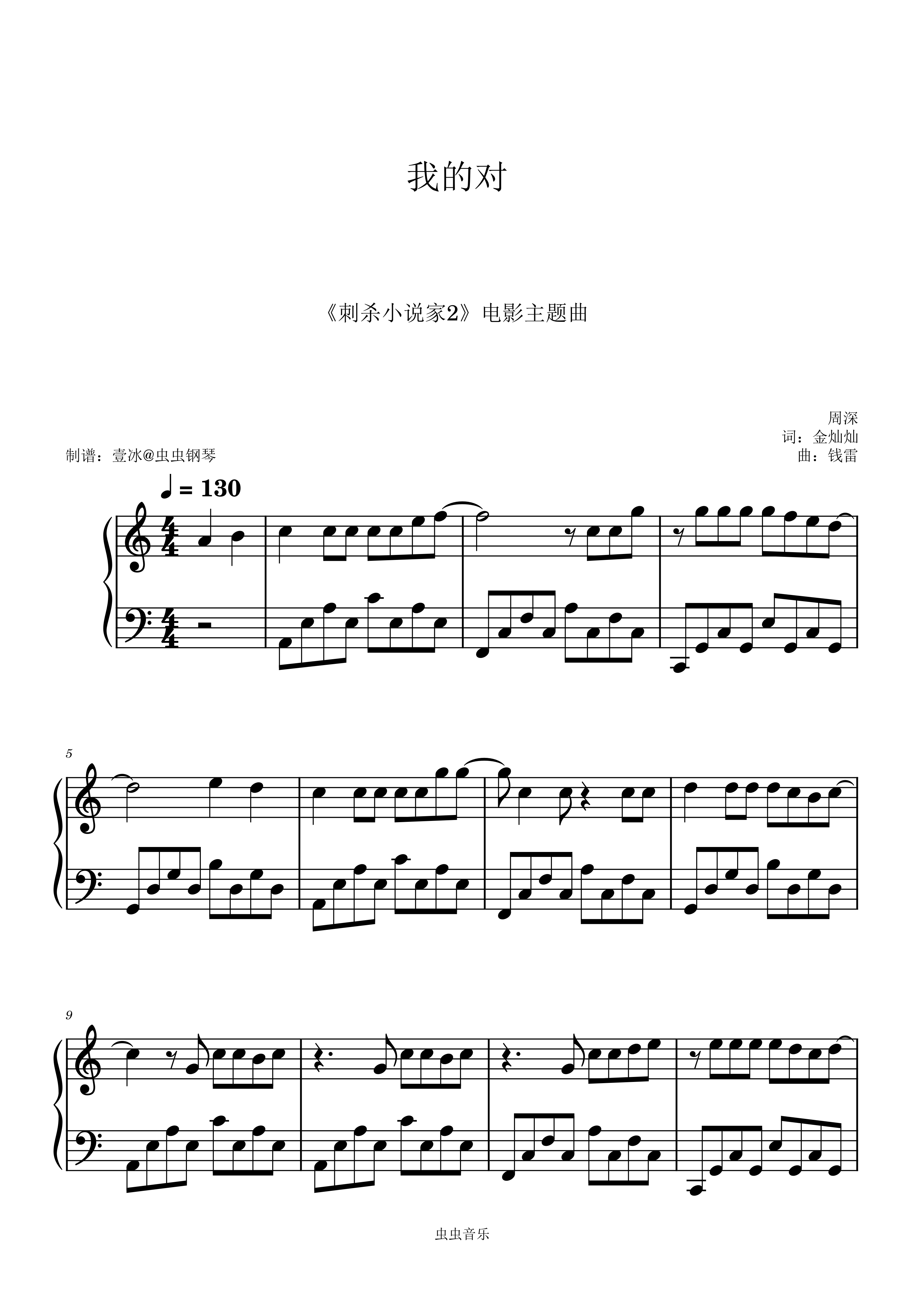 钢琴谱:我的对 (《刺杀小说家2》电影主题曲) - 周深 C调