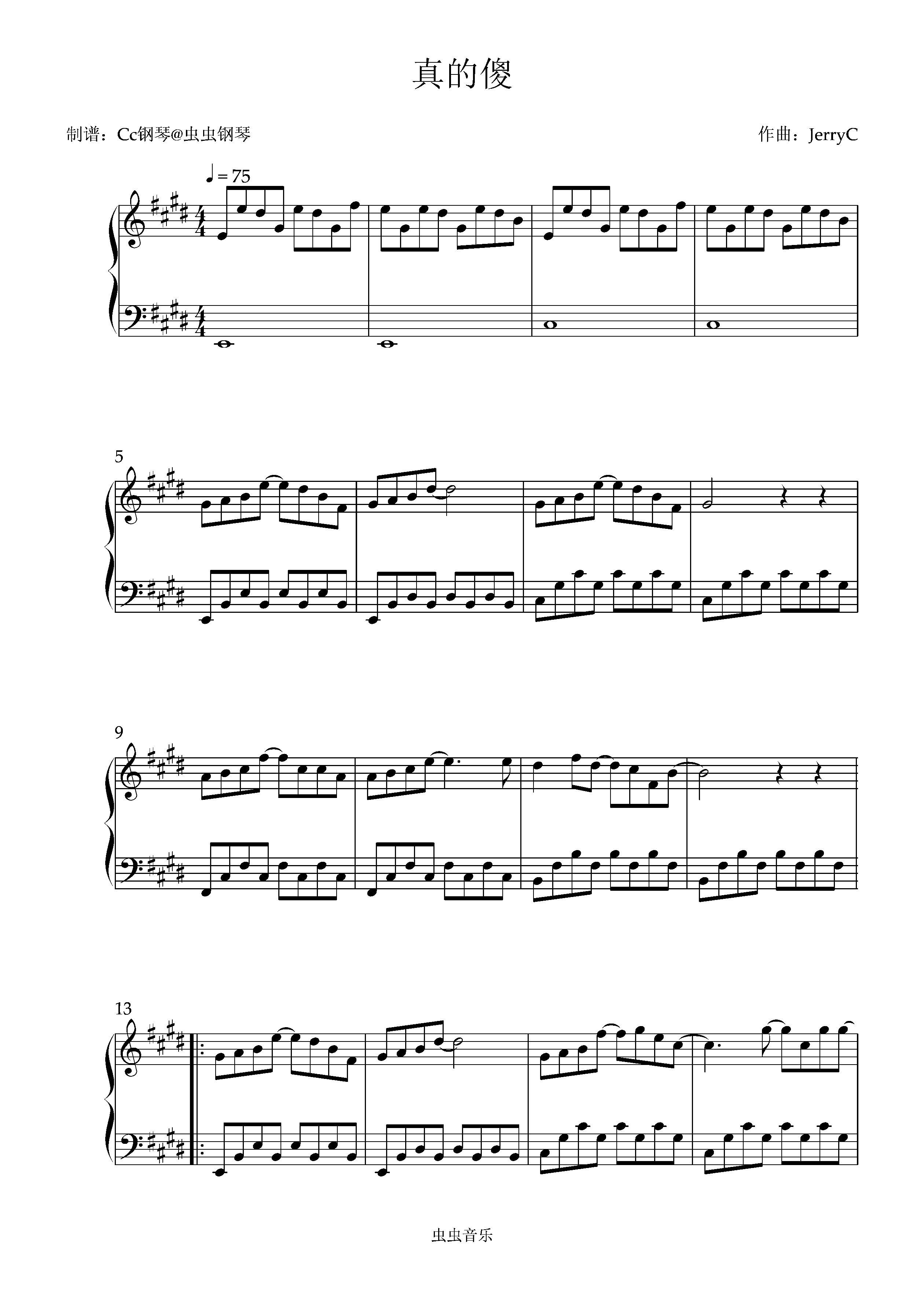 • 真的爱你钢琴简谱 G调 数字双手 梁美薇