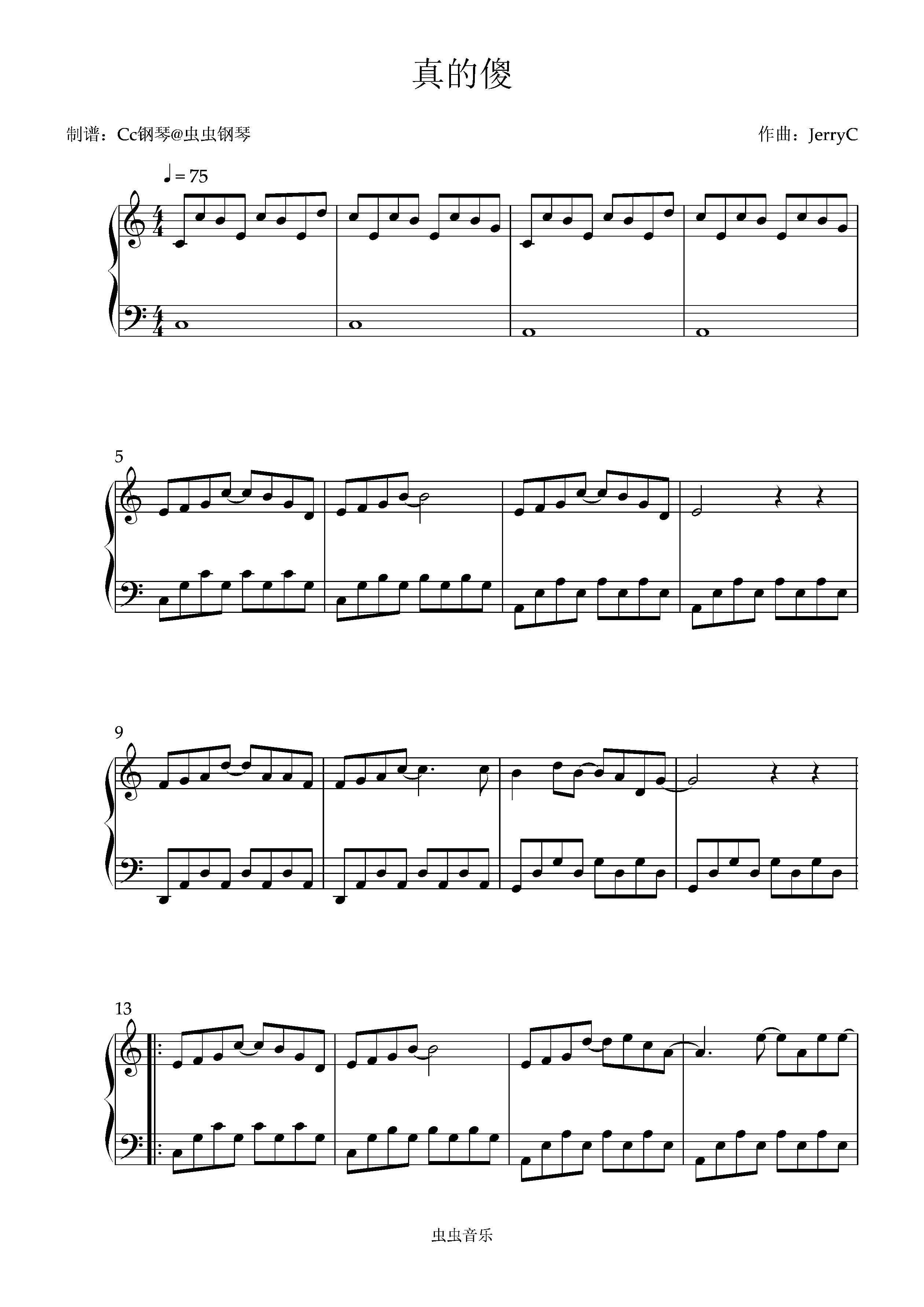 钢琴谱:真的傻 C调 好听易上手