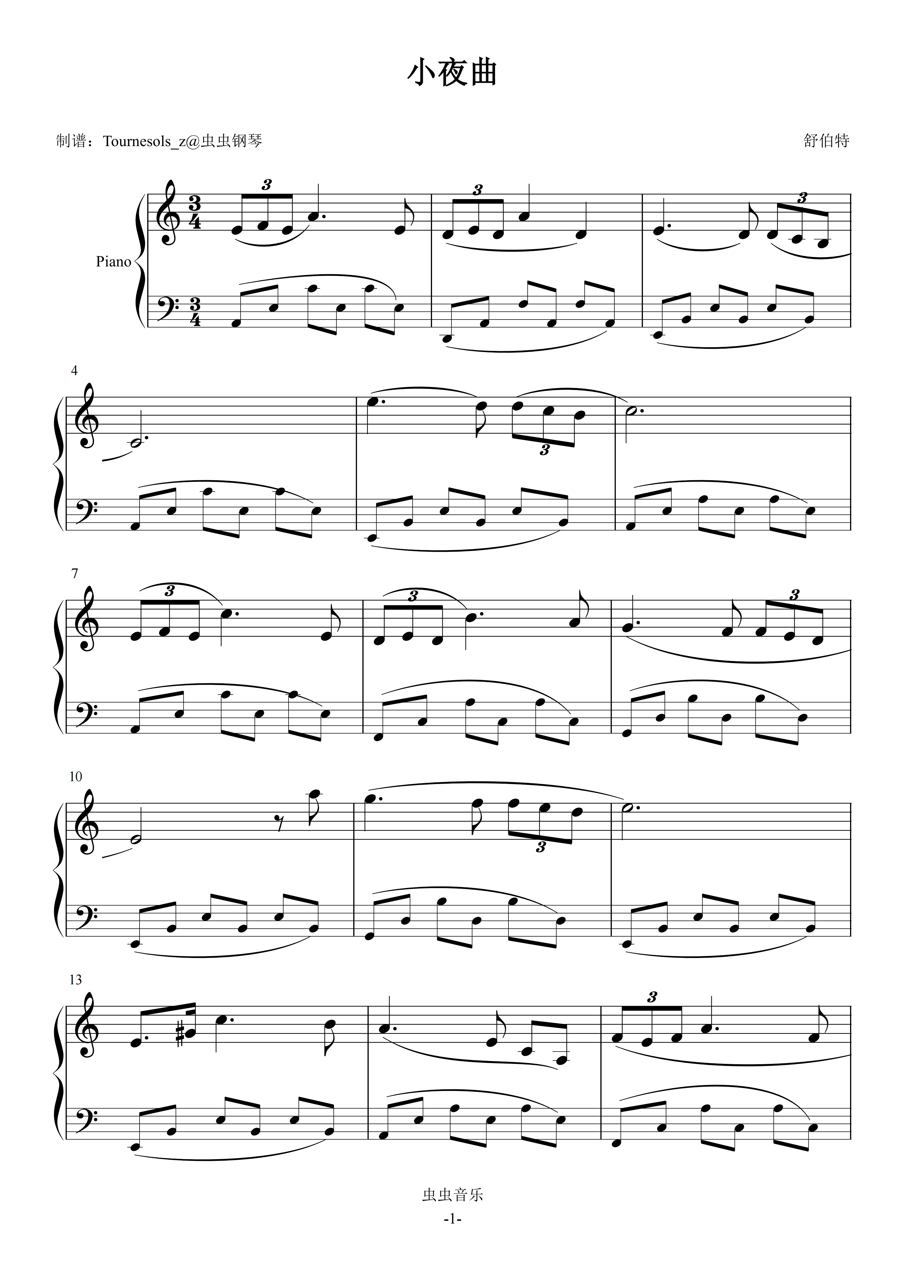 • 6级-小夜曲钢琴简谱 A调 数字双手