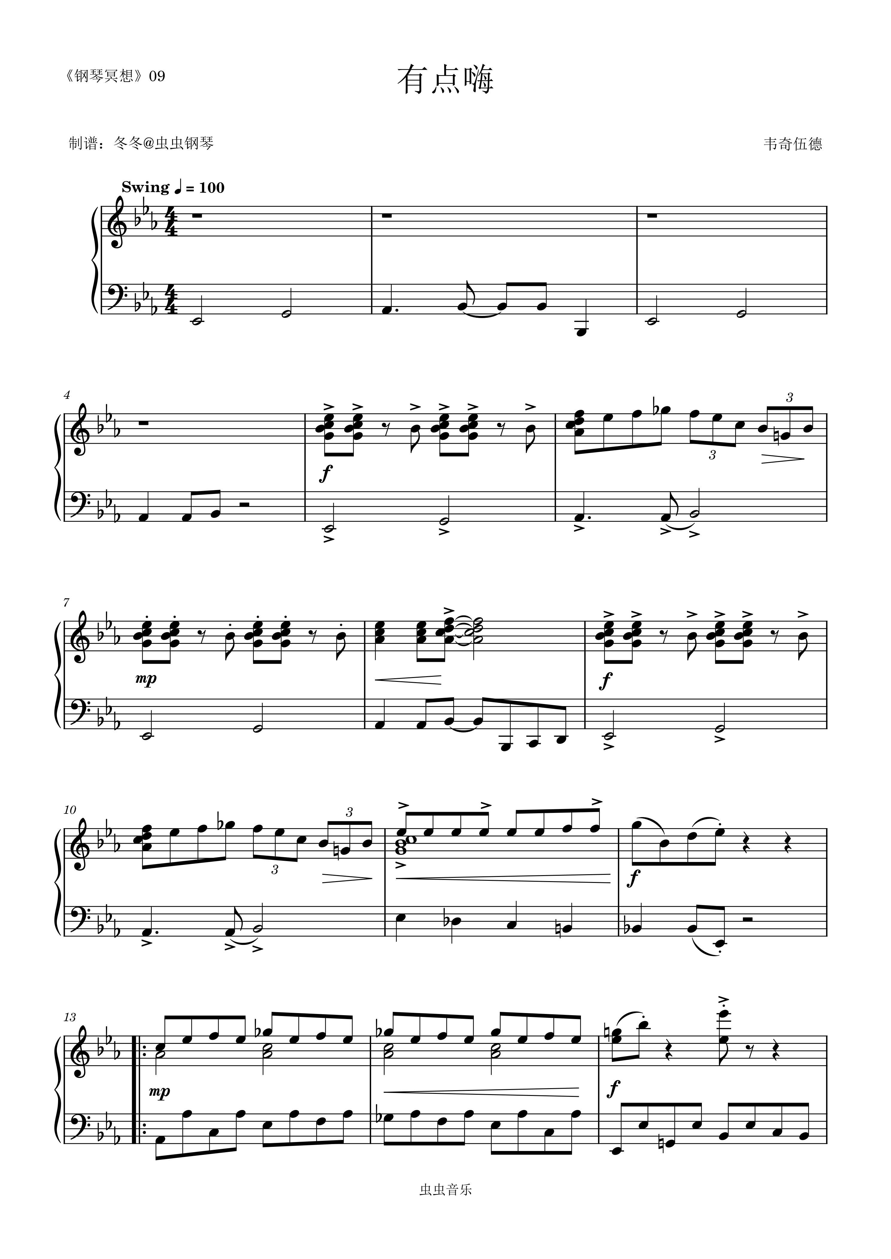 • 8-3. 嗨,呵,没人在家钢琴简谱 C调 数字双手