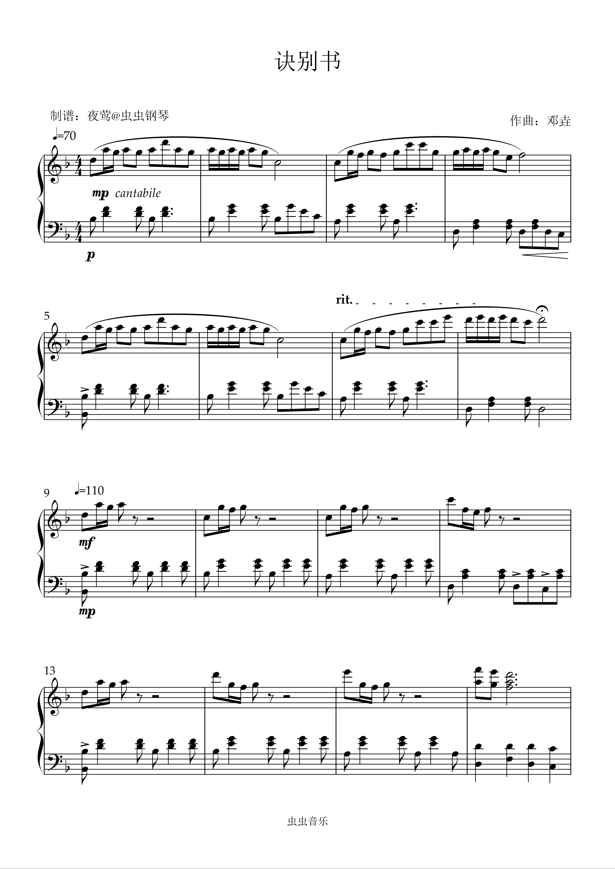 钢琴谱:邓垚《诀别书》原调F调-纯手扒!超高还原