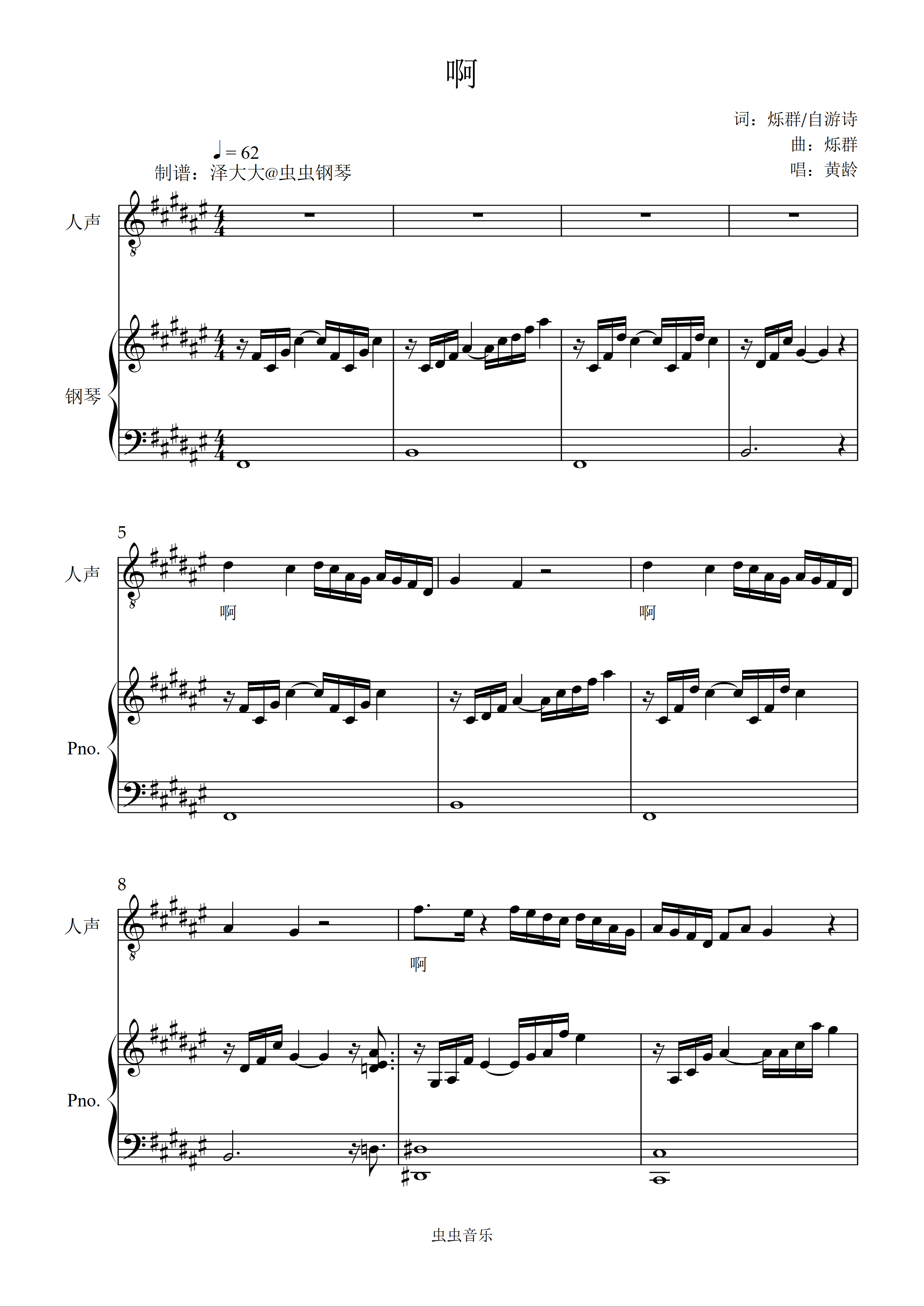 钢琴谱:啊【原版弹唱附词】泽大大 黄龄