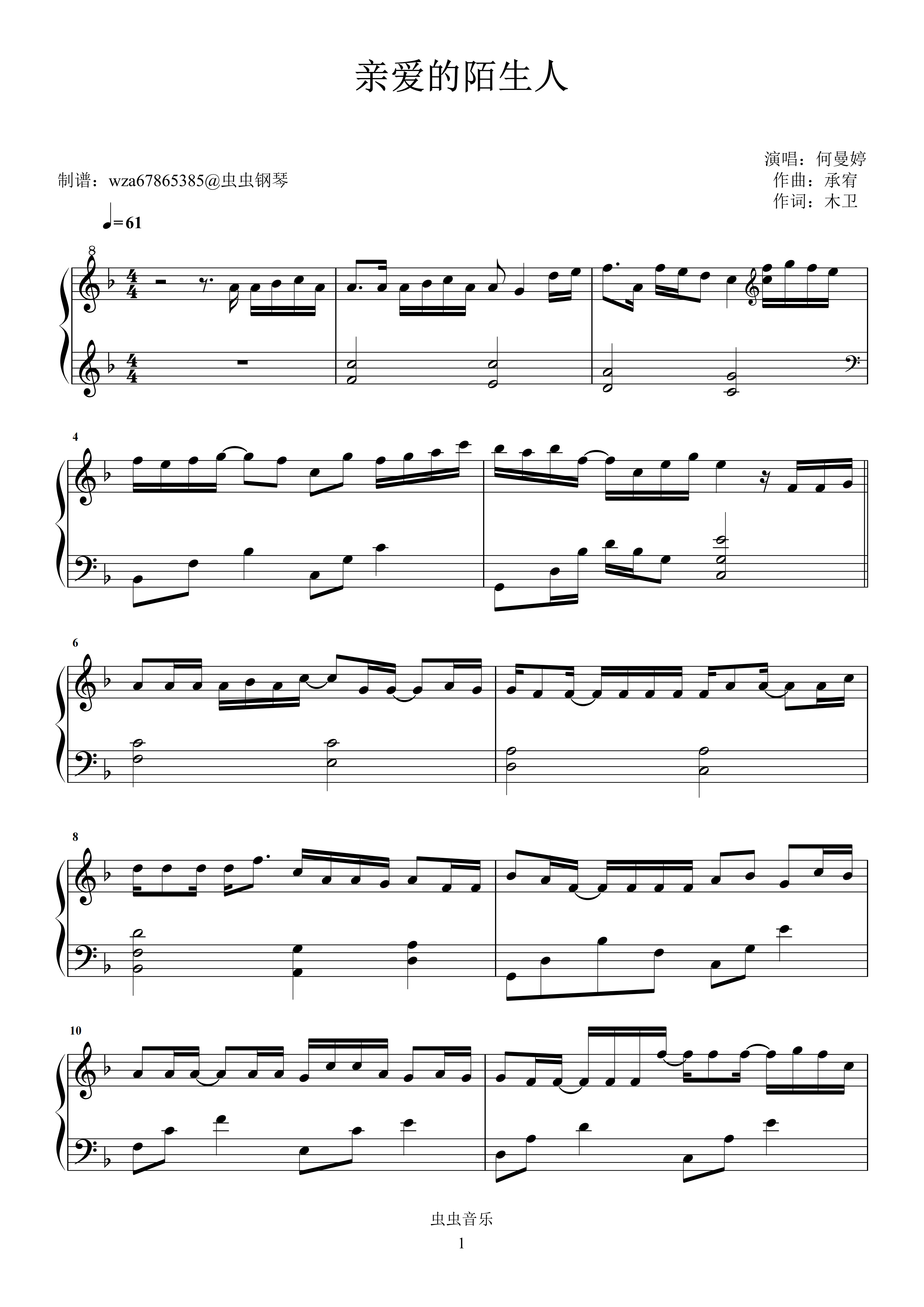 • 亲爱的那不是爱情钢琴简谱 A调 数字双手 方文山