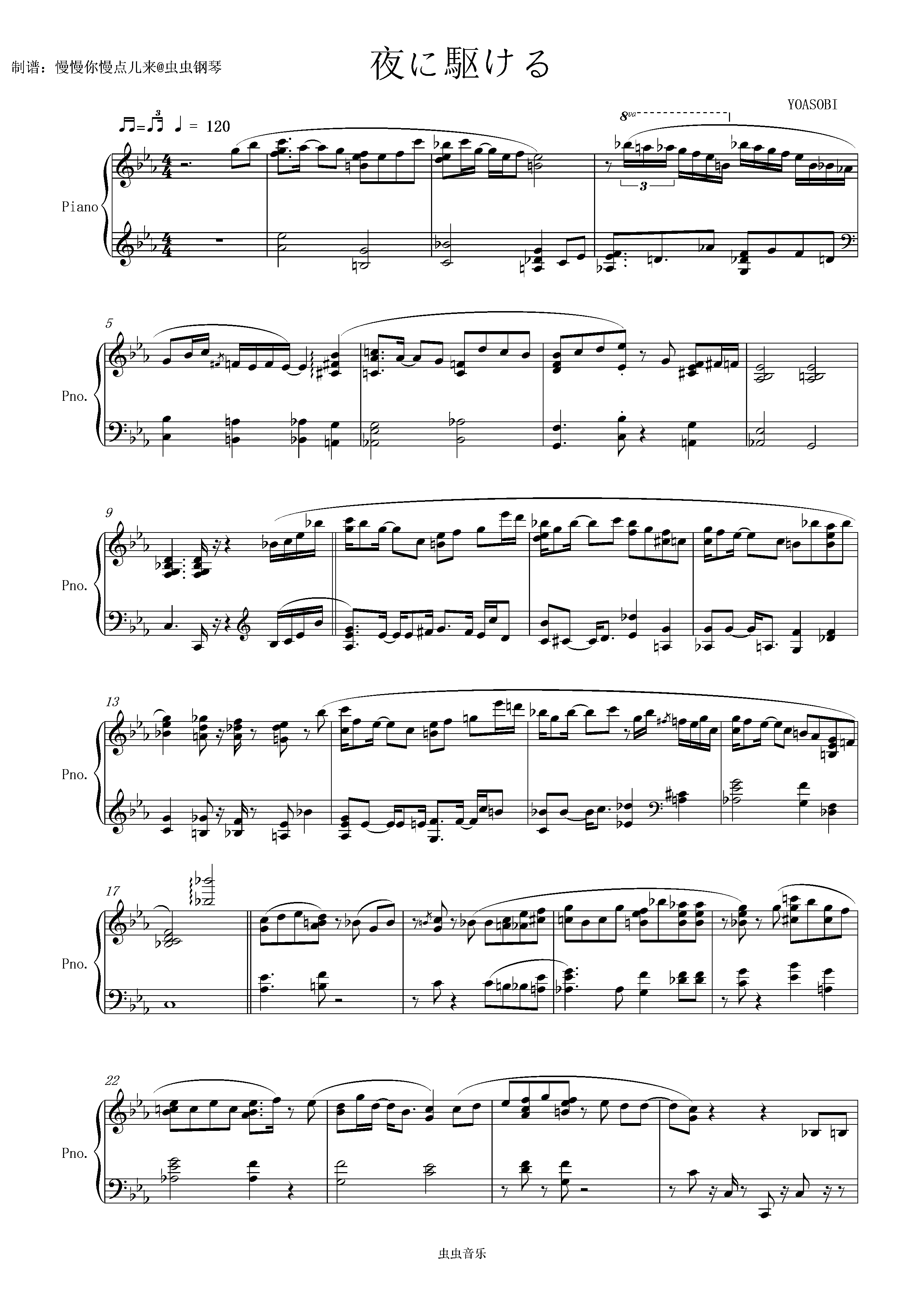夜に駆ける(向夜晚奔去)爵士版钢琴简谱 数字双手