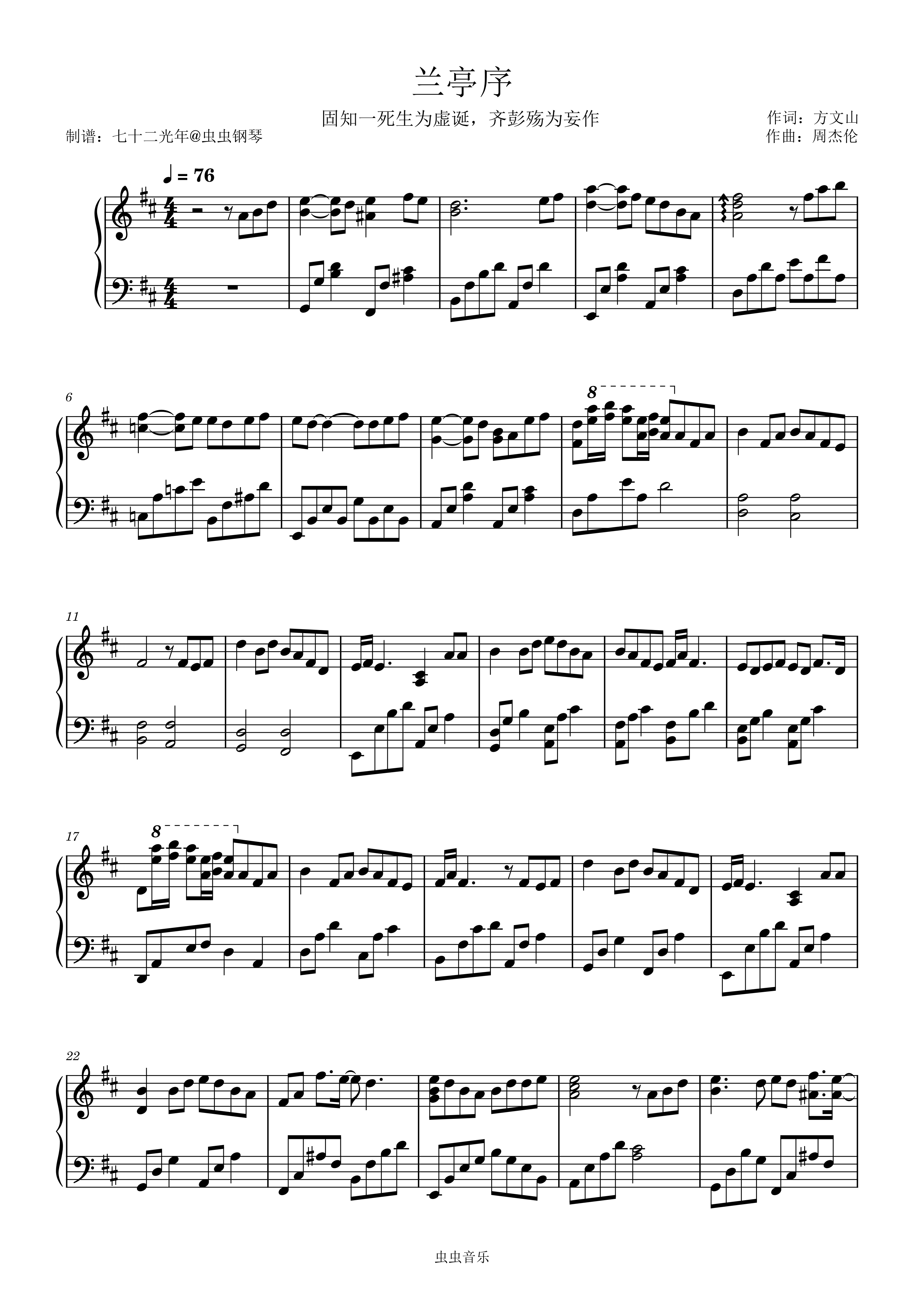 • 兰亭序钢琴简谱 D调 数字双手 方文山