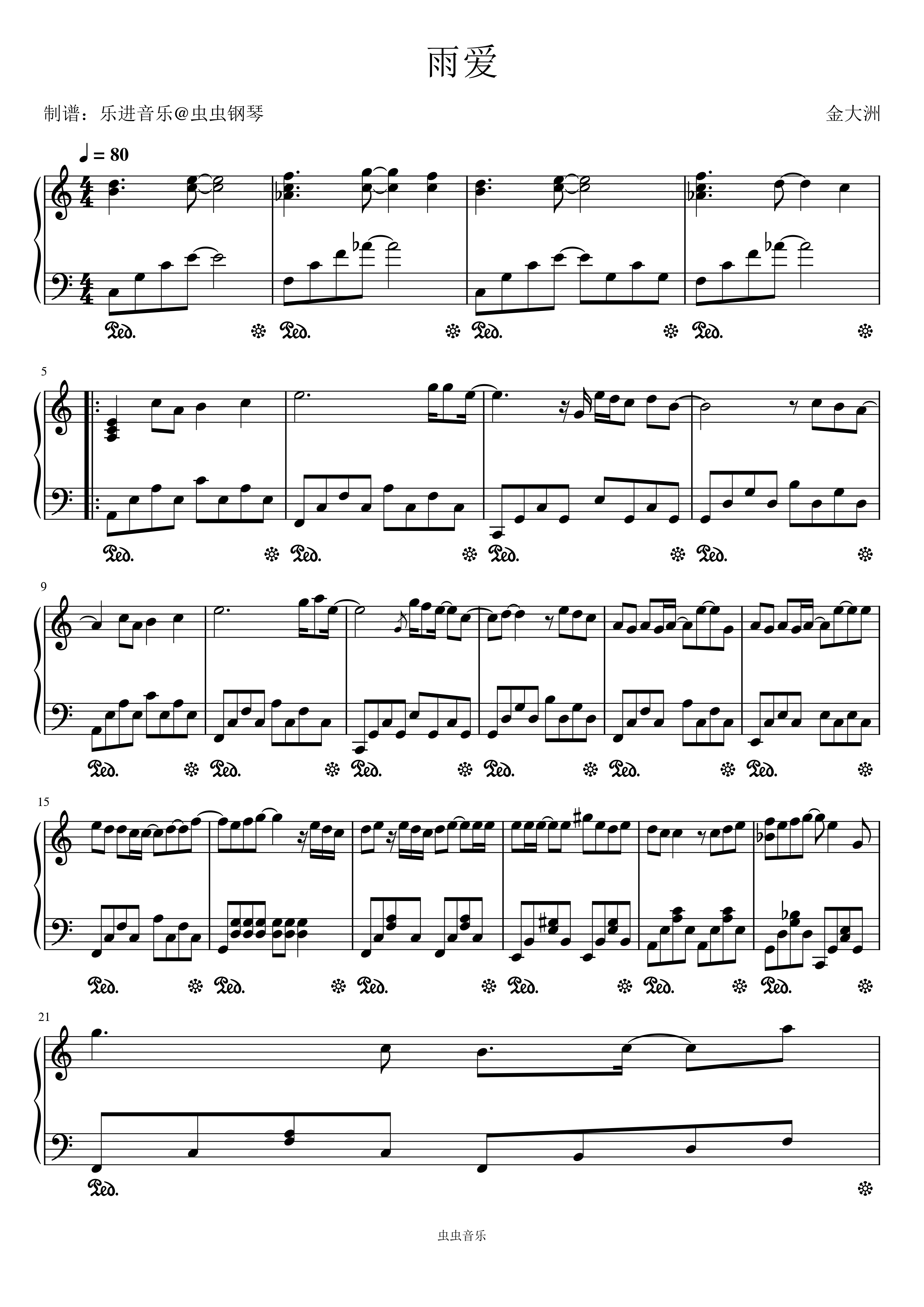 • 雨爱钢琴简谱 C调 数字双手 Wonderful